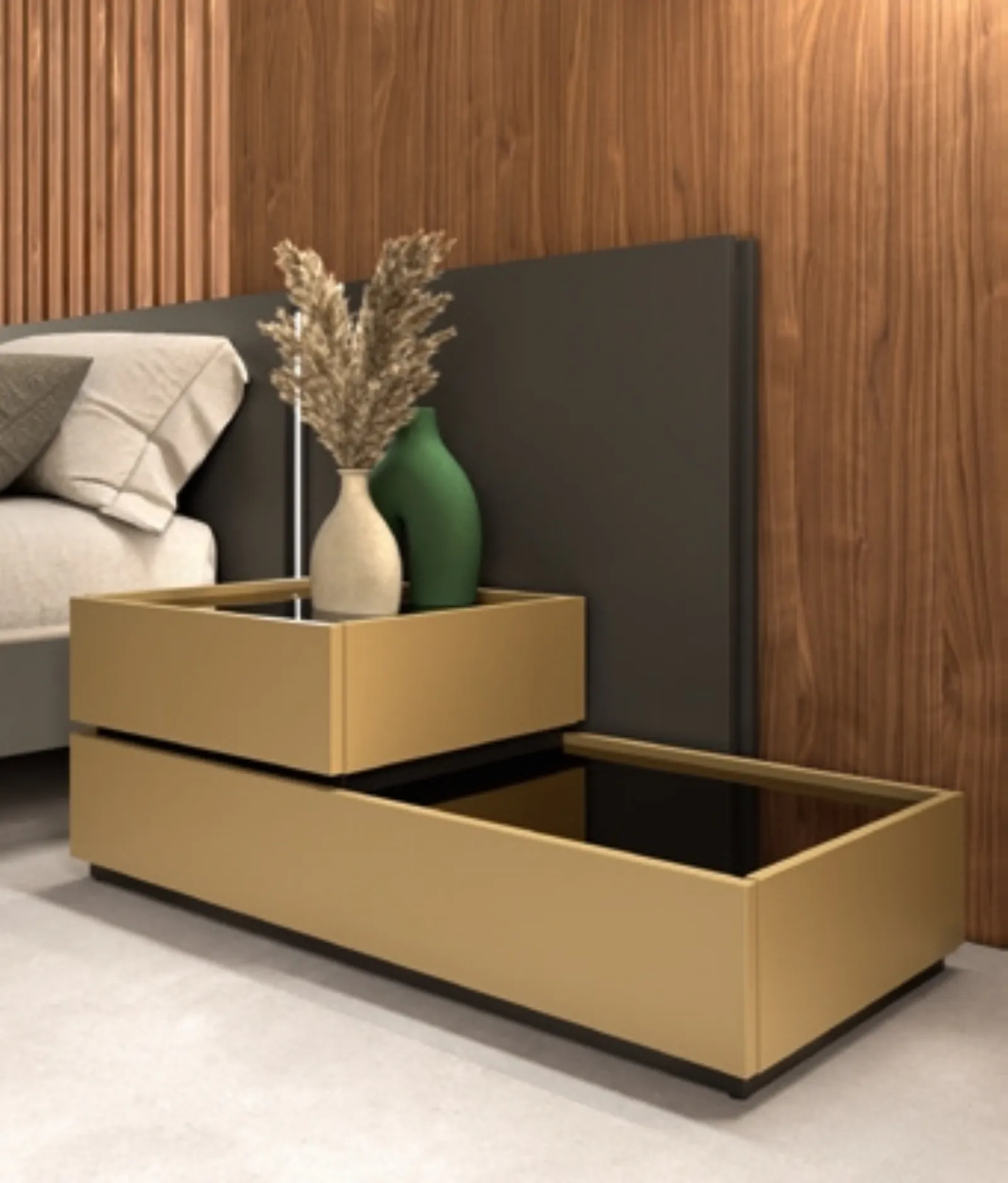 Comodino Koko di GF Interiors: è un mobile contenitivo poliedrico e capace di assicurarti funzionalità e un ottimo effetto estetico in una camera dai richiami design. I modelli in laccato opaco della marca, specialista nella produzione di armadi e comodini, permettono di creare accostamenti ad hoc o anche avere caratteristiche in equilibrato contrasto con i restanti arredi. I Comodini sono arredi necessari in ogni zona notte, infatti consentono di ultimare gli spazi usufruendo al meglio di ogni angolo.