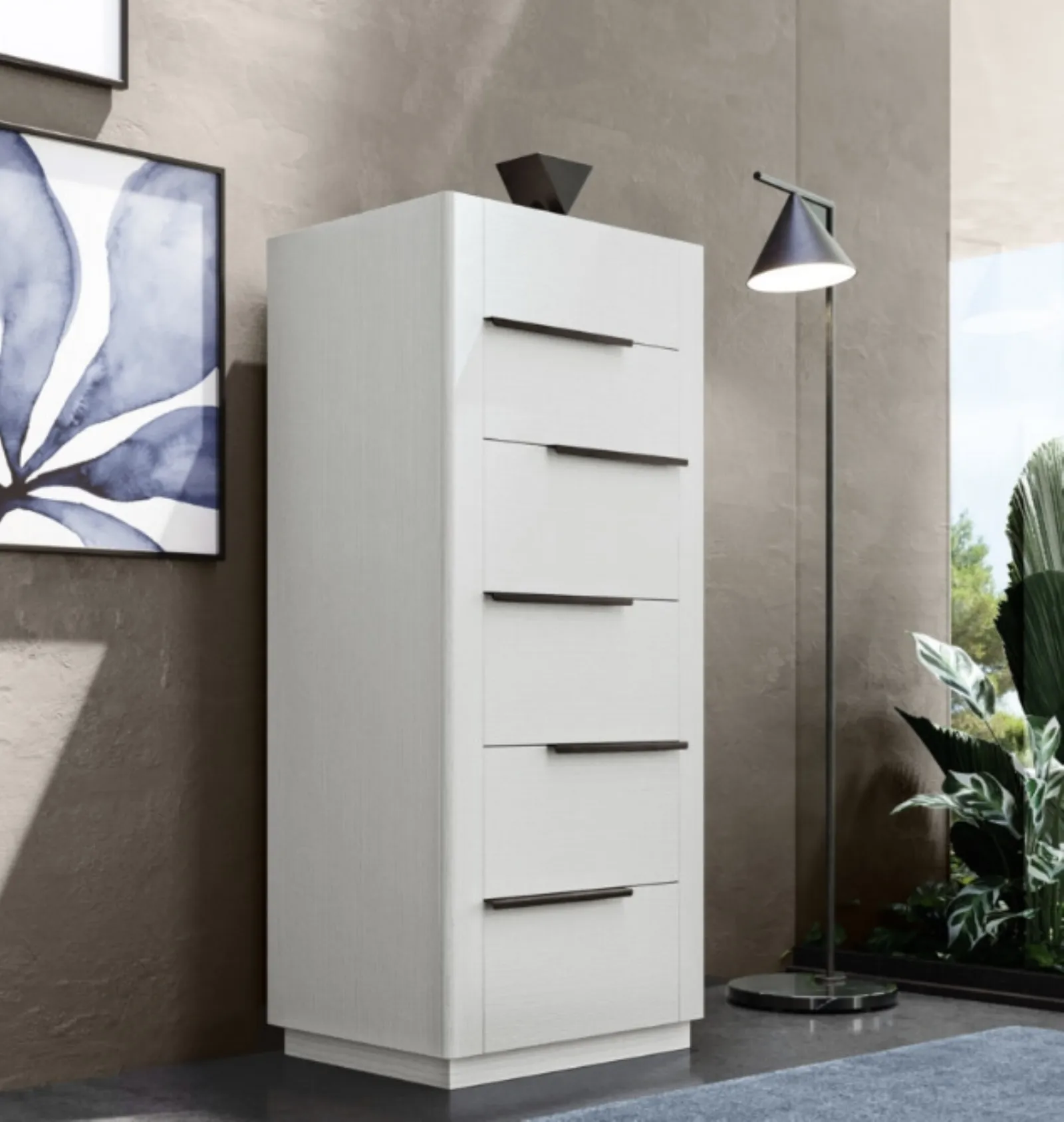 Le tipologie in laccato opaco della firma, specialista nella produzione di armadi e comodini, permettono di creare abbinamenti personalizzati 2 o avere caratteristiche in equilibrato contrasto con i restanti pezzi di arredo. Cassettiera finitura Bianco Oasi di RTL Mobili: è un mobile contenitivo eclettico e capace di garantirti praticità e un ottimo effetto estetico in una camera dai richiami moderni. I Comodini sono arredi necessari in ogni camera da letto, infatti permettono di completare gli spazi valorizzando ogni angolo.