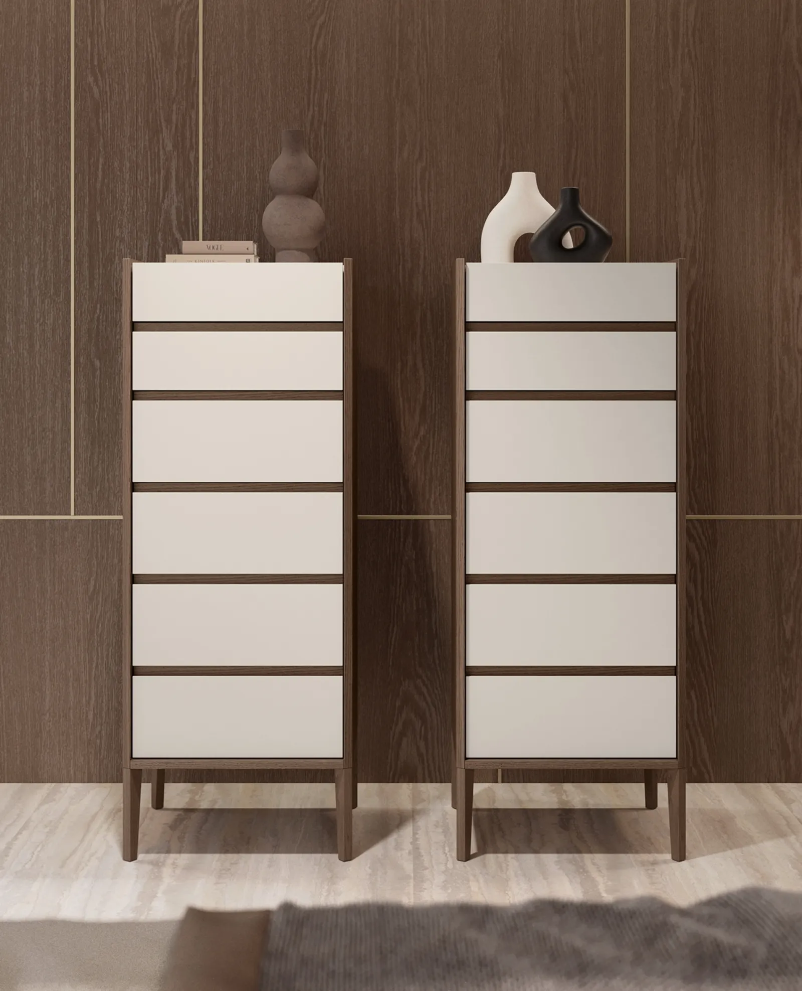 I modelli in laccato opaco dell'azienda, leader nella realizzazione di armadi e comò, consentono di ricreare abbinamenti di gusto differente oppure avere caratteristiche in netto e voluto contrasto con i restanti arredi. I Comodini sono arredi necessari in ogni camera da letto, infatti permettono di completare gli spazi sfruttando bene ogni angolo. Cassettiera Andrea di Olivieri: è un mobile contenitivo eclettico e capace di garantirti funzionalità e grande valore estetico in una camera dai richiami moderni.