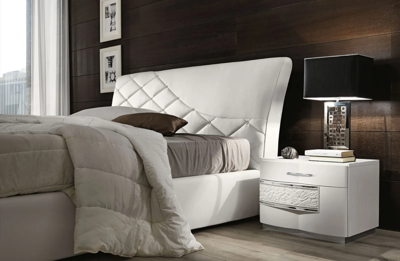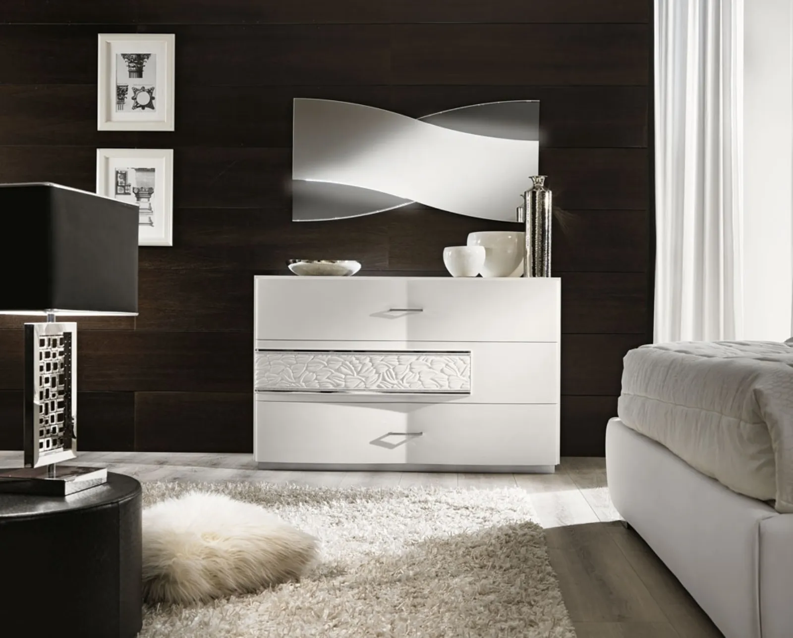 Scopri un'ampia gamma di Comodini moderni della firma, leader nella produzione di mobili ed elementi accessori per la camera, e valorizza i tuoi interni assicurandoti molta praticità, spazio utile e uno stile unico. Gruppo notte laccato bianco Nolita Night di RTL Mobili: contattaci per info e preventivi su questo contenitore in laccato opaco. I Comodini, comò e settimini possono essere abbinati al letto e all'armadio oppure possono essere in netto e voluto contrasto con essi: devono slezionati valutando le oggettive possibilità di spazio e cercando di ricreare un ben dosato concept d’arredo.