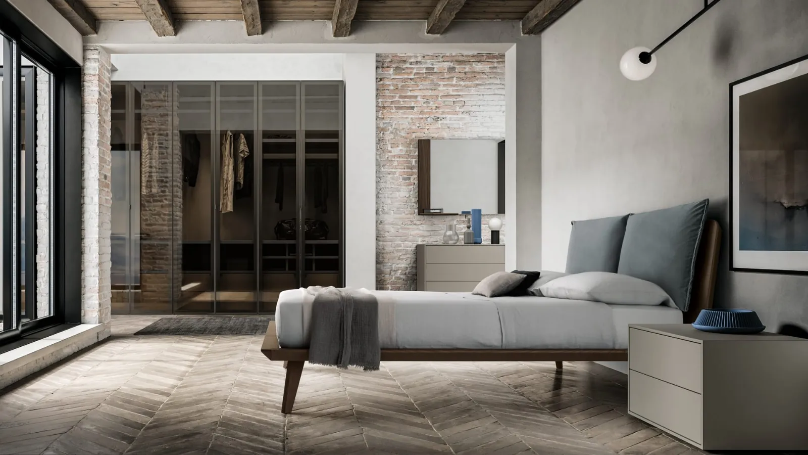 I Comodini sono mobili fondamentali in ogni camera, per questo permettono di ultimare gli spazi usufruendo al meglio di ogni angolo. I modelli in laccato opaco della firma, leader nella produzione di armadi e comodini, permettono di creare abbinamenti di gusto differente o avere caratteristiche in voluto contrasto con i restanti oggetti d'arredo e mobili. Gruppo Notte Quadro Filo di SantaLucia: è un mobile contenitivo eclettico e capace di assicurarti funzionalità e un ottimo effetto estetico in una camera dai richiami moderni.
