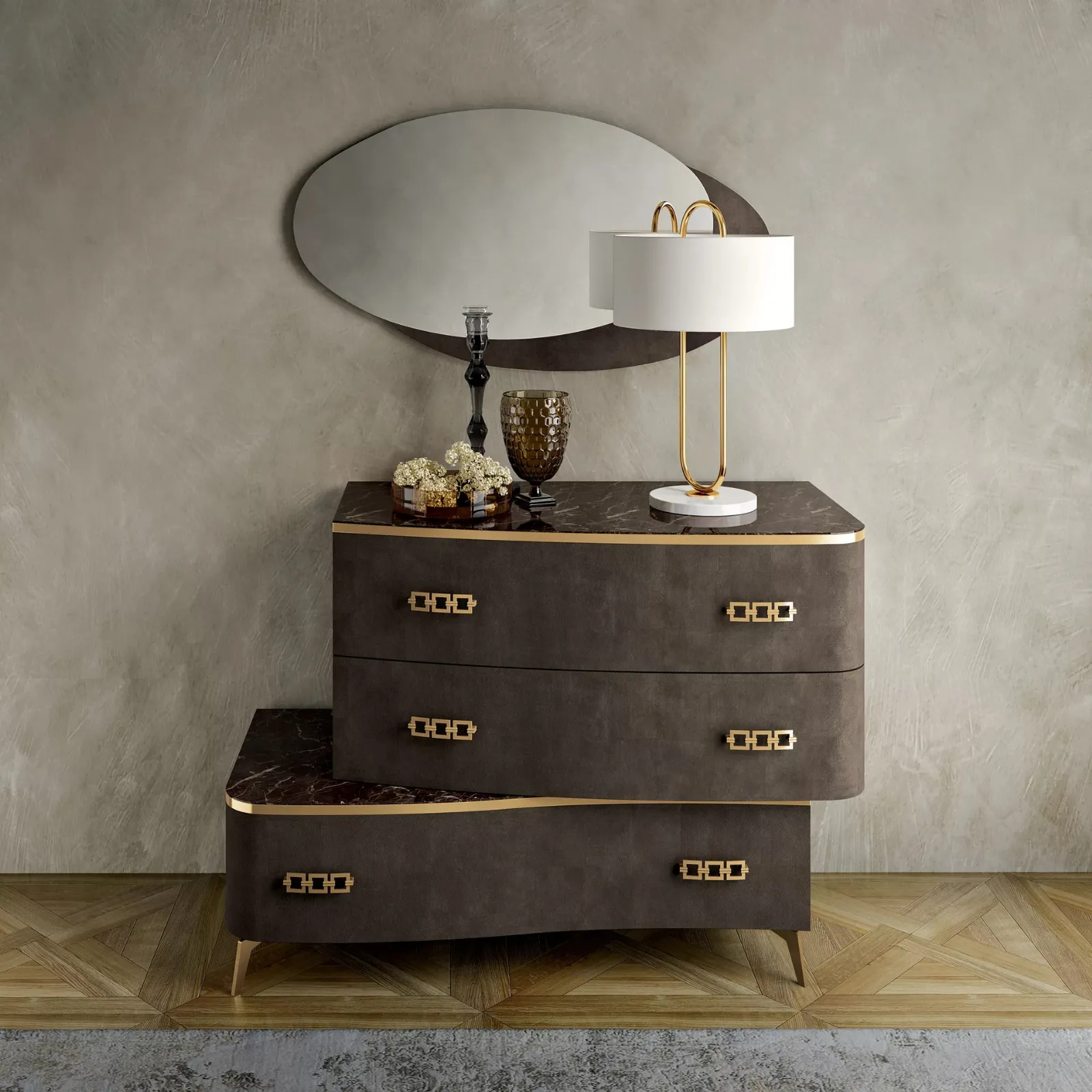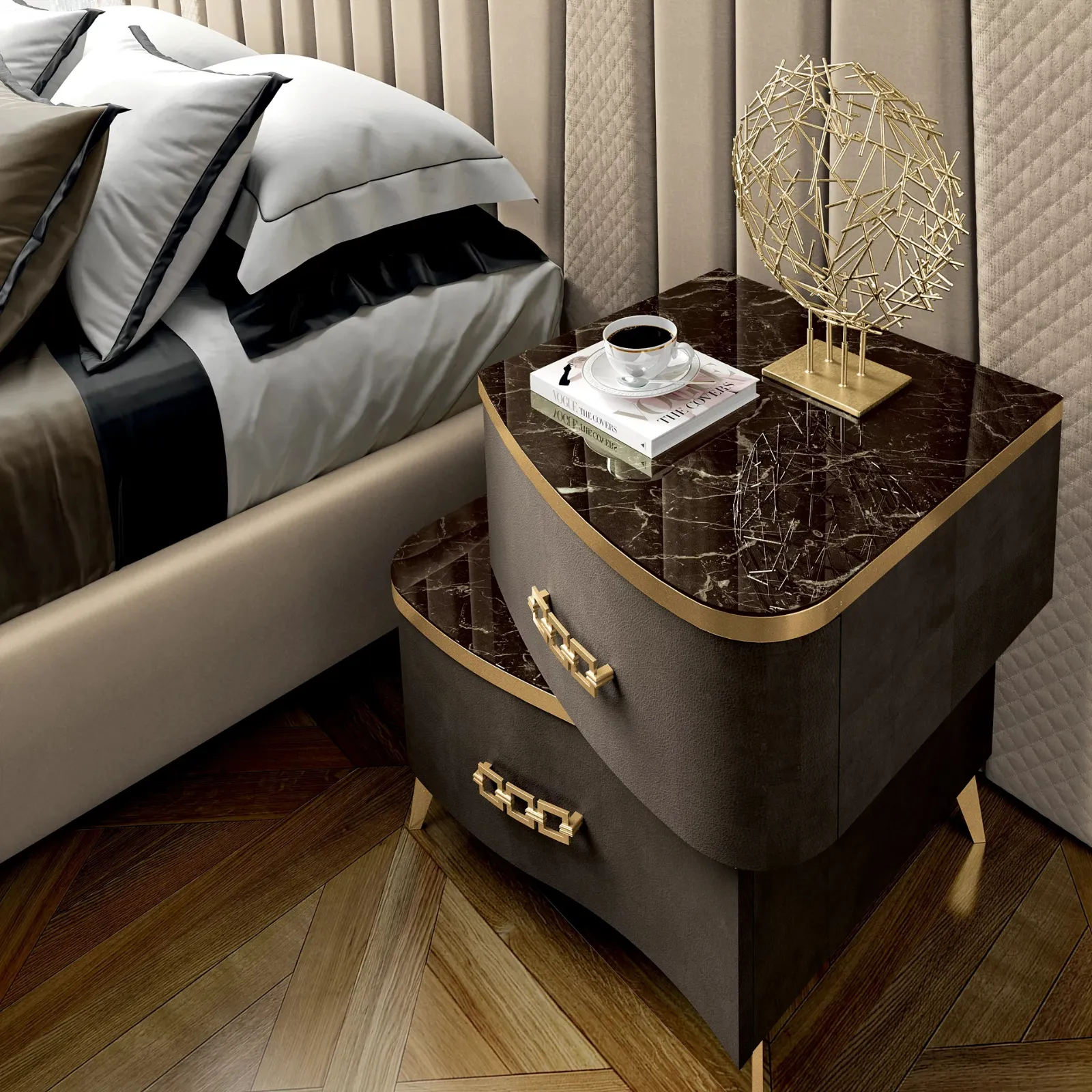 Gruppo Notte Deluxe Gold di Spar: contattaci per info e preventivi su questo contenitore in pelle. I Comodini, comò e settimini possono essere abbinati al letto e al guardaroba oppure possono essere in netto e voluto contrasto con essi: devono preferiti assecondando le vere disponibilità di spazio e cercando di creare un ben dosato concept d’arredo. Scopri un'ampia gamma di Comodini design dell'azienda, specialista nella realizzazione di mobili e oggetti accessori per la camera, e valorizza i tuoi spazi garantendoti grande funzionalità, spazio contenitivo e uno stile unico.