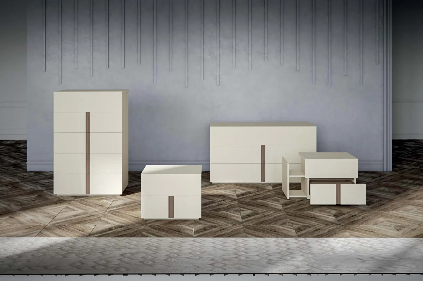 Se cerchi un'arredamento di qualità, il Gruppo Notte Square di Veneran è l'ideale per la tua zona del riposo. Per sfruttare al meglio ogni angolo, offriamo una gamma di Comodini, comò e settimini moderni, realizzati in laccato opaco. Questo materiale offre resistenza, praticità ed un grande valore estetico.