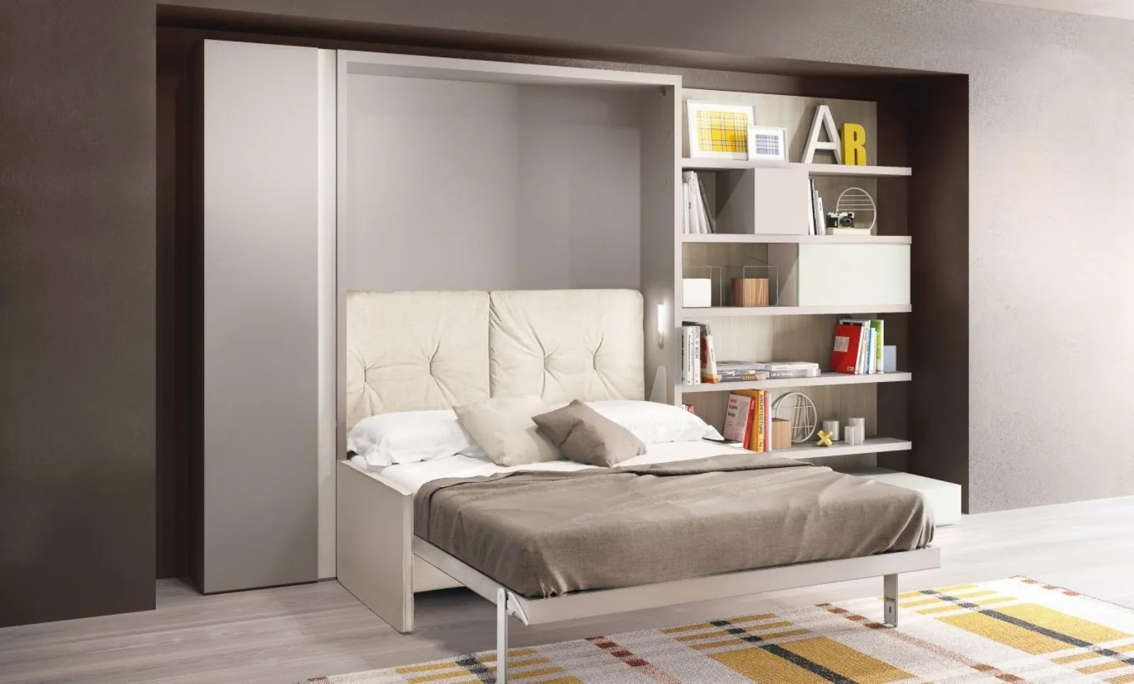 - I letti a scomparsa salvaspazio come il modello mostrato in foto, sono ideali per arredare spazi piccoli con la massima funzionalità, sfruttando al meglio ogni angolo.