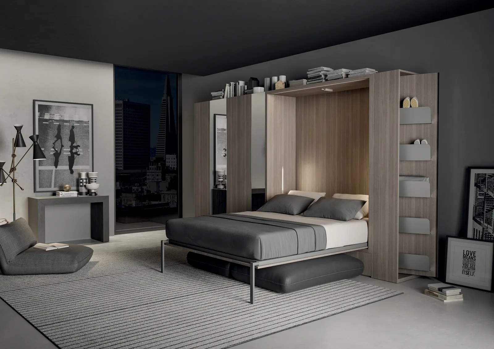 Letto a Scomparsa Comp 254 di Tumidei: Soluzione pratica e sofisticata per ottimizzare gli spazi in casa e arredare una zona notte moderna.