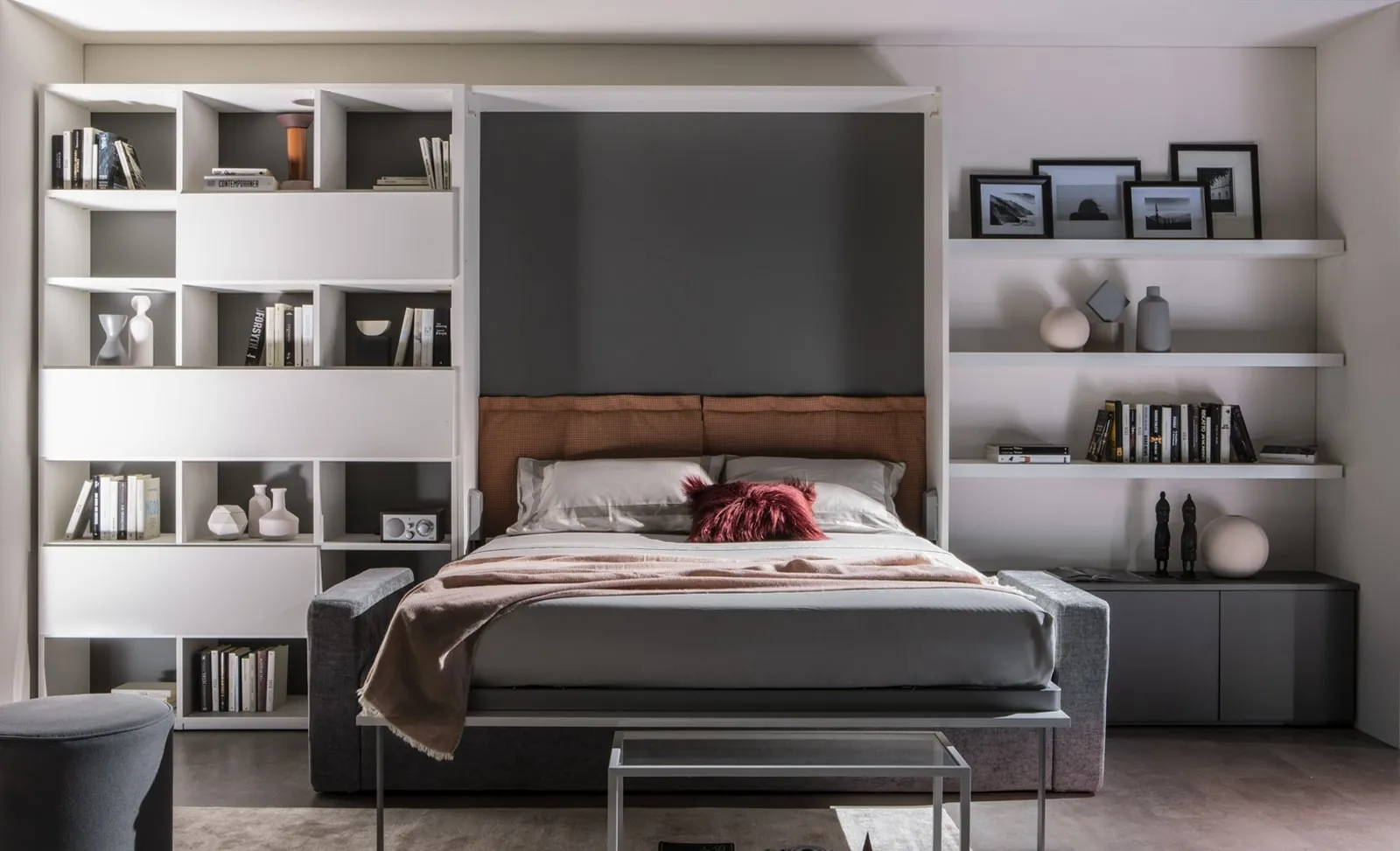 Organizza al meglio gli interni con la pratica e sofisticata proposta Essedue Vertigo Sofa 01. Un letto matrimoniale a scomparsa che arreda la zona notte con stile.