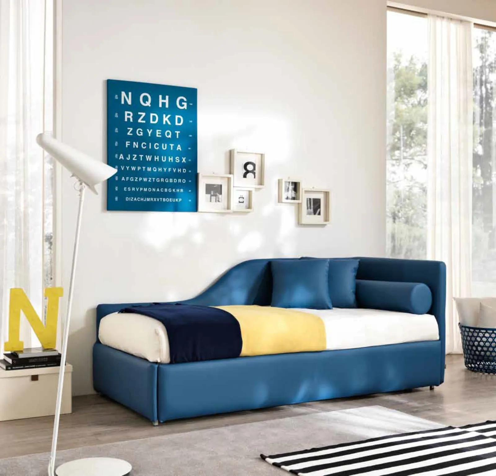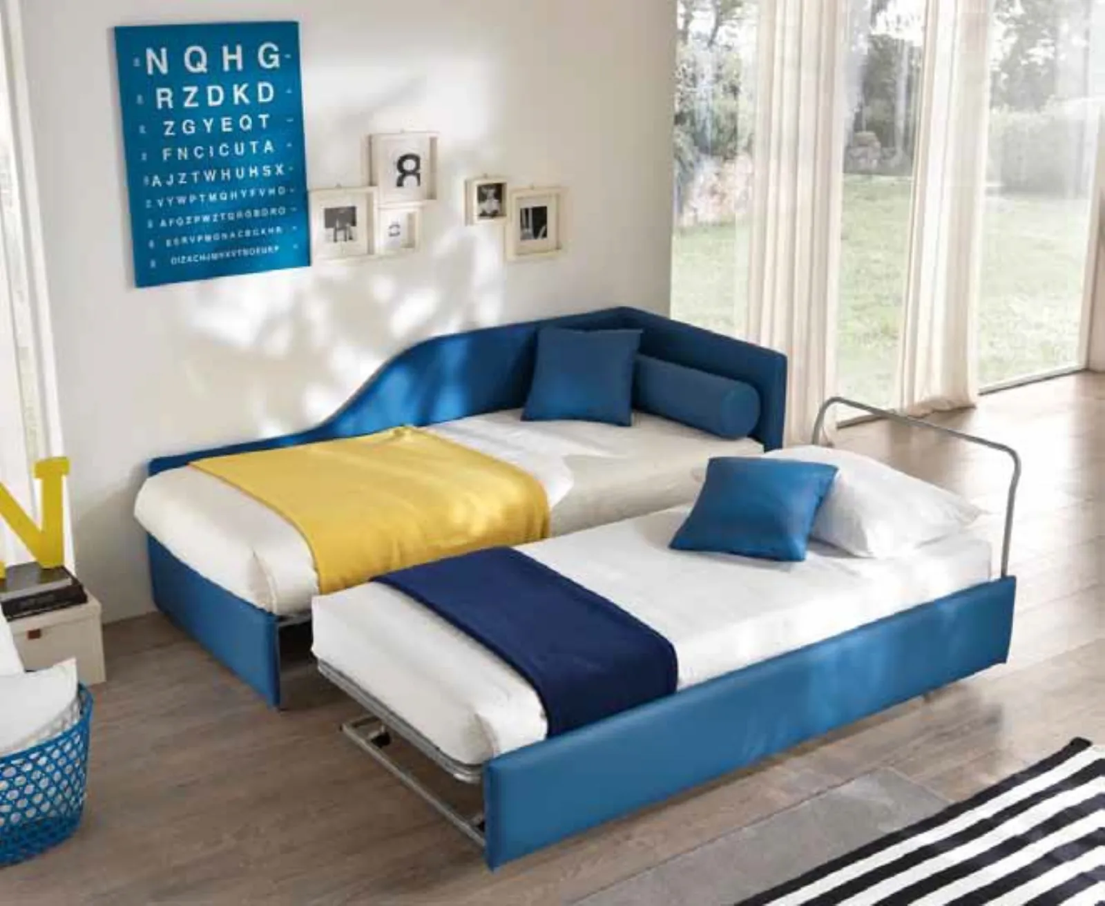 Letto singolo Clik-Clak con letto estraibile di Susan imbottiti