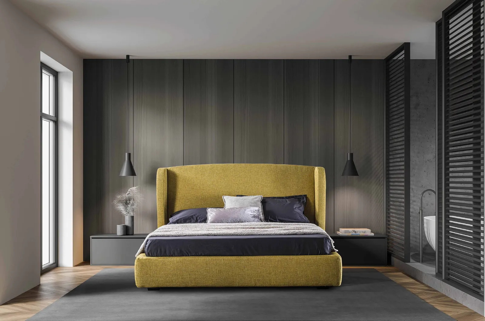 Per progettare ottimamente la camera da letto è di primaria importanza valutare gli accostamenti con armadi e comò, accessori e quant'altro: se desideri mobili moderni, il modello in foto fa per te. Naviga il nostro portale di Arredamento Casa e ottimizza la tua camera con i Letti matrimoniali imbottiti dei migliori produttori. Il Letto in tessuto Aosta di GR Salotti è uno dei prodotti più originali della marca, sinonimo di resistenza nel tempo, qualità dei materiali e stile.