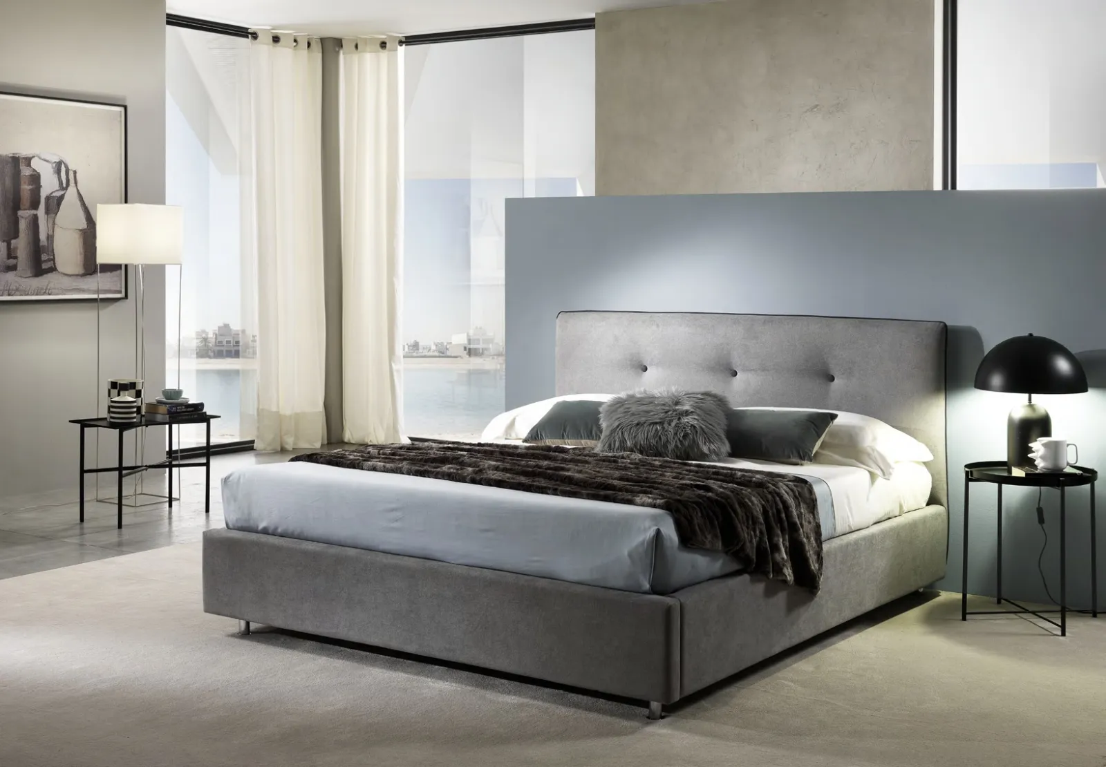Letto in tessuto Capri di Italnotte: il modello presente in foto è caratterizzato da materiali pregiati e linee decise, che invitano a goderti un sonno tranquillo e ristoratore. I Letti matrimoniali imbottiti di Italnotte sono pensati per essere abbinati a mobili e oggetti accessori di ogni tipo. Scegli cromie e texture, abat jour e piantane, armadi e comò, e realizza il tuo progetto d’arredo nella zona notte. Il Letto in tessuto Capri di Italnotte assicura uno spazio intimo e confortevole in ogni zona notte, con un design unico ed un sonno profondo. Ecco alcune caratteristiche del letto:
