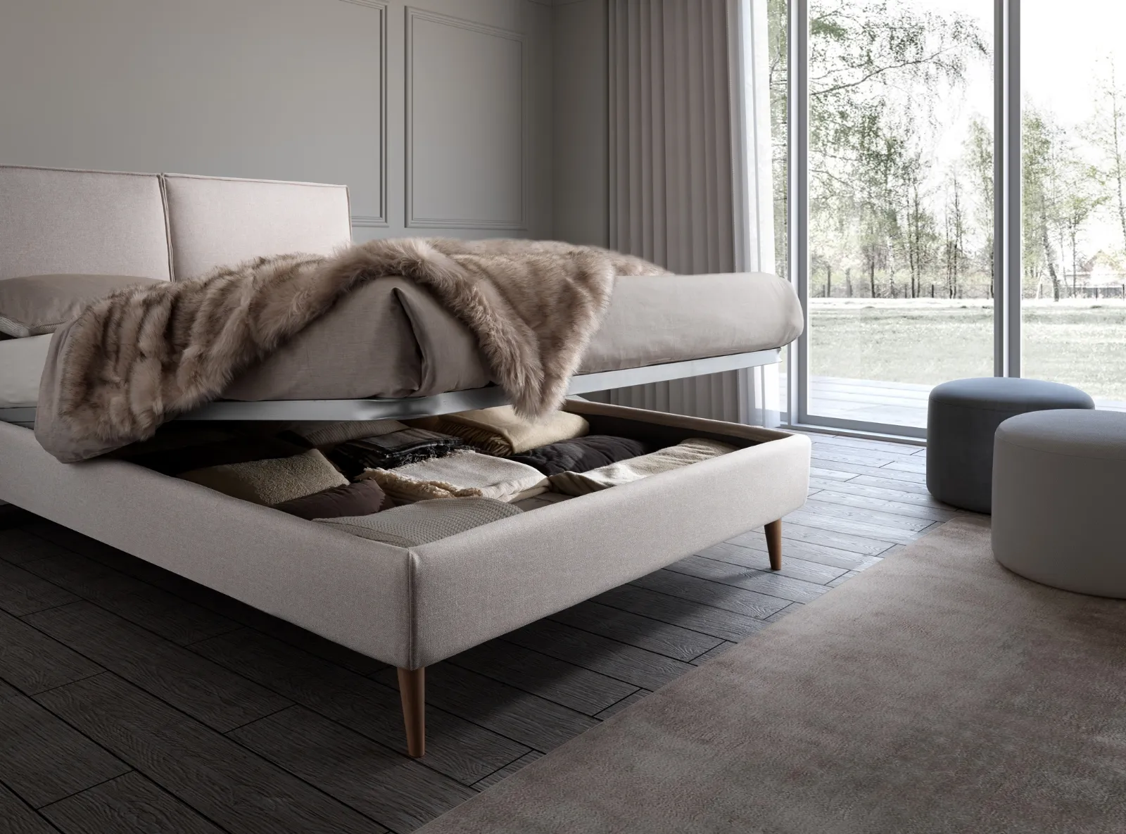 I Letti matrimoniali con contenitore dell'azienda, specialista nella realizzazione dell'Arredamento Casa, vengono progettati per essere abbinati a mobili ed elementi accessori di ogni genere, come armadi e comodini, abat jour e piantane: scegli tonalità e finiture e realizza il tuo progetto d’arredo nella camera. Il Letto Garland Twenty di San Lorenzo crea uno spazio intimo e confortevole in ogni camera, garantendoti il riposo migliore e uno stile unico. Se desideri una soluzione in tessuto, il modello mostrato in foto è caratterizzato da materiali durevoli e forme decise, che invitano a trascorrere un riposo profondo e ristoratore.