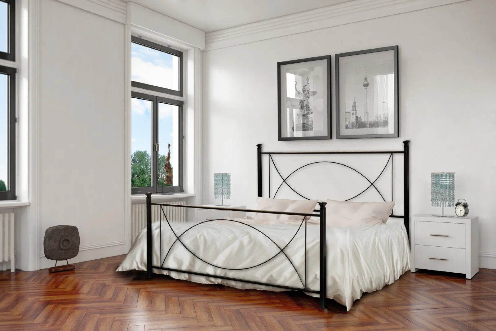 Con i letti matrimoniali moderni in ferro battuto di Florentiabed, la tua camera sarà dotata di un elemento d'arredo che unisce stile e comfort, ideale per i tuoi momenti di relax.