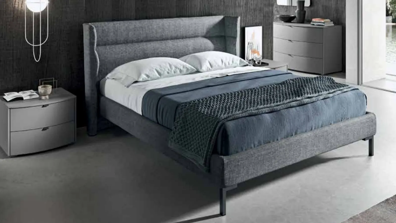 I Letti matrimoniali imbottiti dell'azienda, specialista nella produzione dell'Arredamento Casa, sono pensati per essere abbinati a mobili e complementi di ogni tipo, come armadi e comò, lampade e piantane: scegli cromie e finiture e realizza il tuo concept d’arredo nella camera. Il Letto imbottito Fold di Mab crea uno spazio accogliente e confortevole in ogni camera, assicurandoti il relax totale e uno stile unico. Se vuoi una soluzione in tessuto, il modello mostrato in foto è contraddistinto da materiali di qualità e linee decise, che invitano a passare un riposo completo e rigenerante.