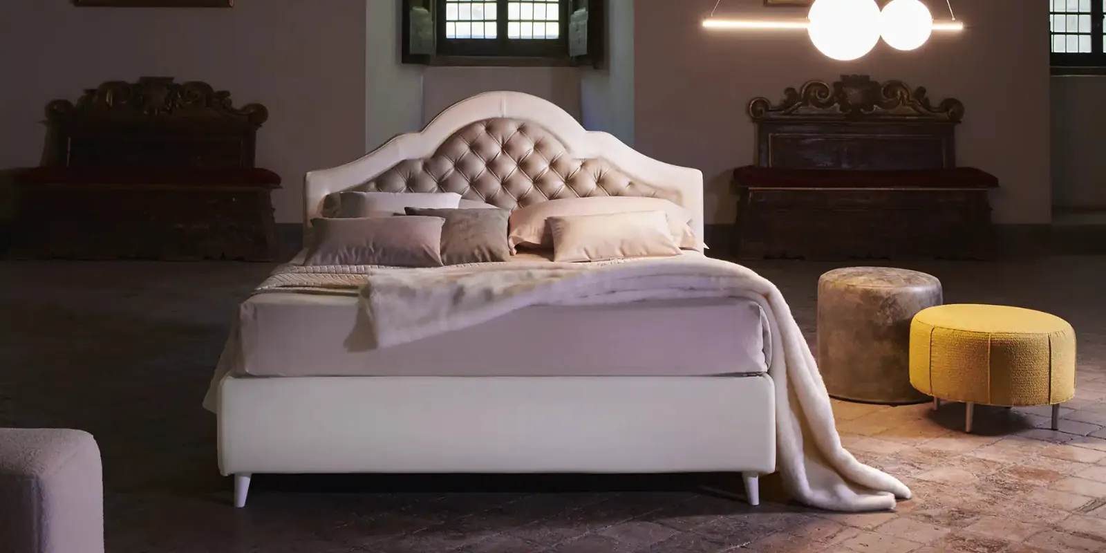 Nel nostro sito ti aspettano diversi mobili per la camera, dove potrai trovare un’ampia possibilità di caratterizzazione in quanto a colori e abbinamenti, elementi accessori e tanto altro. Il Letto con testiera Tumminia di Mauri Soft Dream è una tra le più originali soluzioni della firma, specialista del buon sonno, capace di garantire comodità, praticità e un design unico. Se vuoi garantirti il comfort più totale nei tuoi momenti di relax, scegli i Letti matrimoniali classici in pelle come il modello visibile in foto. Scopri un'infinità di letti imbottiti delle migliori marche di Arredamento Casa e valorizza la tua camera.