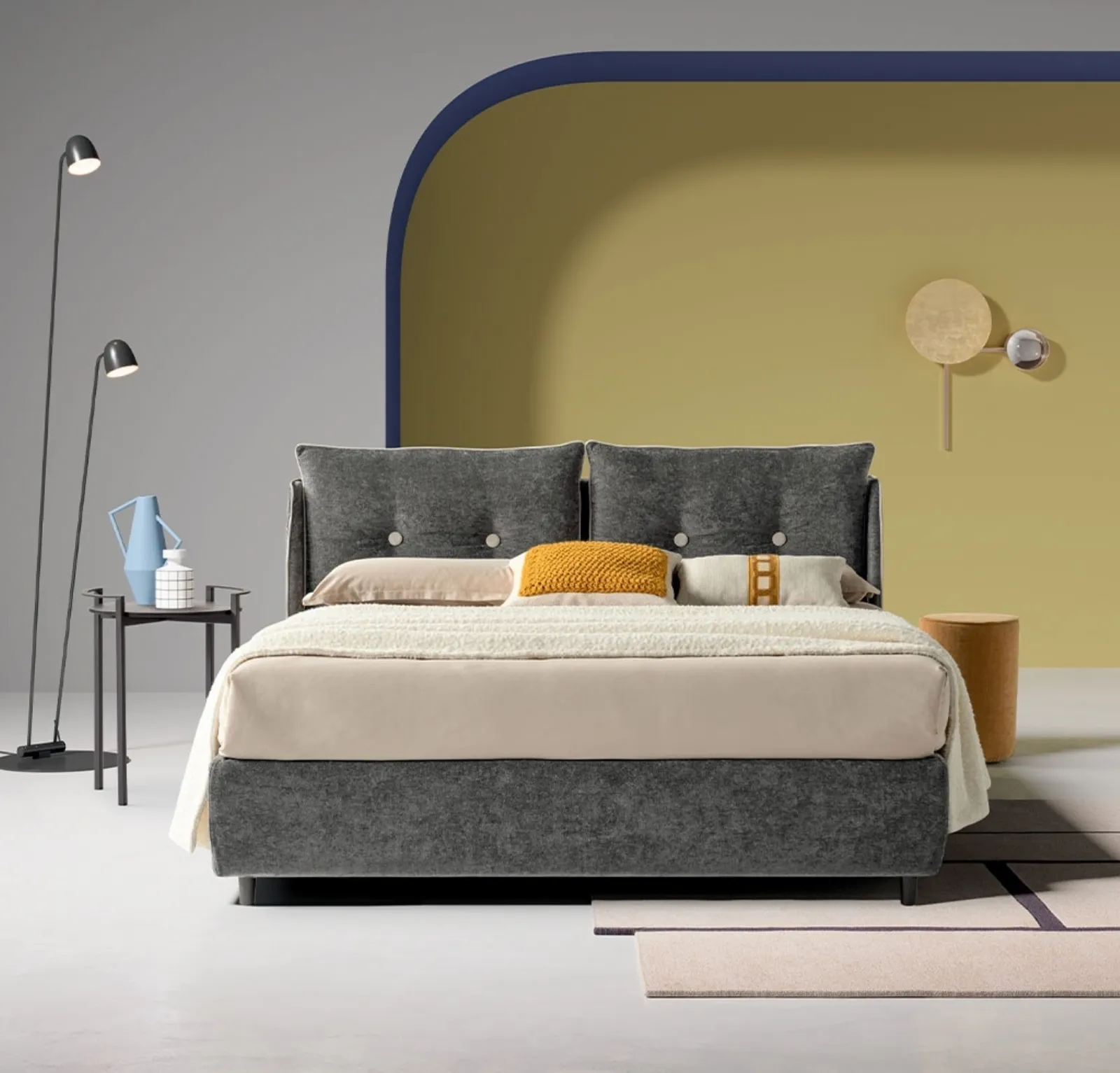 Se vuoi una soluzione in tessuto, il modello mostrato in foto è connotato da materiali durevoli e linee decise, che invitano a trascorrere un riposo completo e rigenerante. I Letti matrimoniali imbottiti del brand, specialista nella produzione dell'Arredamento Casa, sono progettati per essere abbinati a mobili e complementi di ogni tipo, come armadi e comò, abat jour e piantane: scegli cromie e texture e realizza il tuo progetto d’arredo nella camera. Il Letto in tessuto Tecla di Nefi Italia ricrea uno spazio accogliente e confortevole in ogni camera, assicurandoti il relax totale e un design unico.