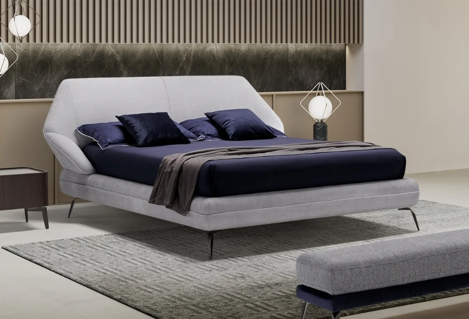 I Letti matrimoniali imbottiti del brand, specialista nella realizzazione dell'Arredamento Casa, sono progettati per essere abbinati a mobili e complementi di ogni genere, come armadi e comodini, abat jour e piantane: scegli cromie e finiture e realizza il tuo concept d’arredo nella zona notte. Il Letto di design con testiera Origami di Novaluna ricrea uno spazio intimo e confortevole in ogni zona notte, assicurandoti il sonno più profondo e uno stile unico. Se vuoi una soluzione in tessuto, il modello mostrato in foto è connotato da materiali durevoli e forme decise, che invitano a passare un sonno profondo e ristoratore.