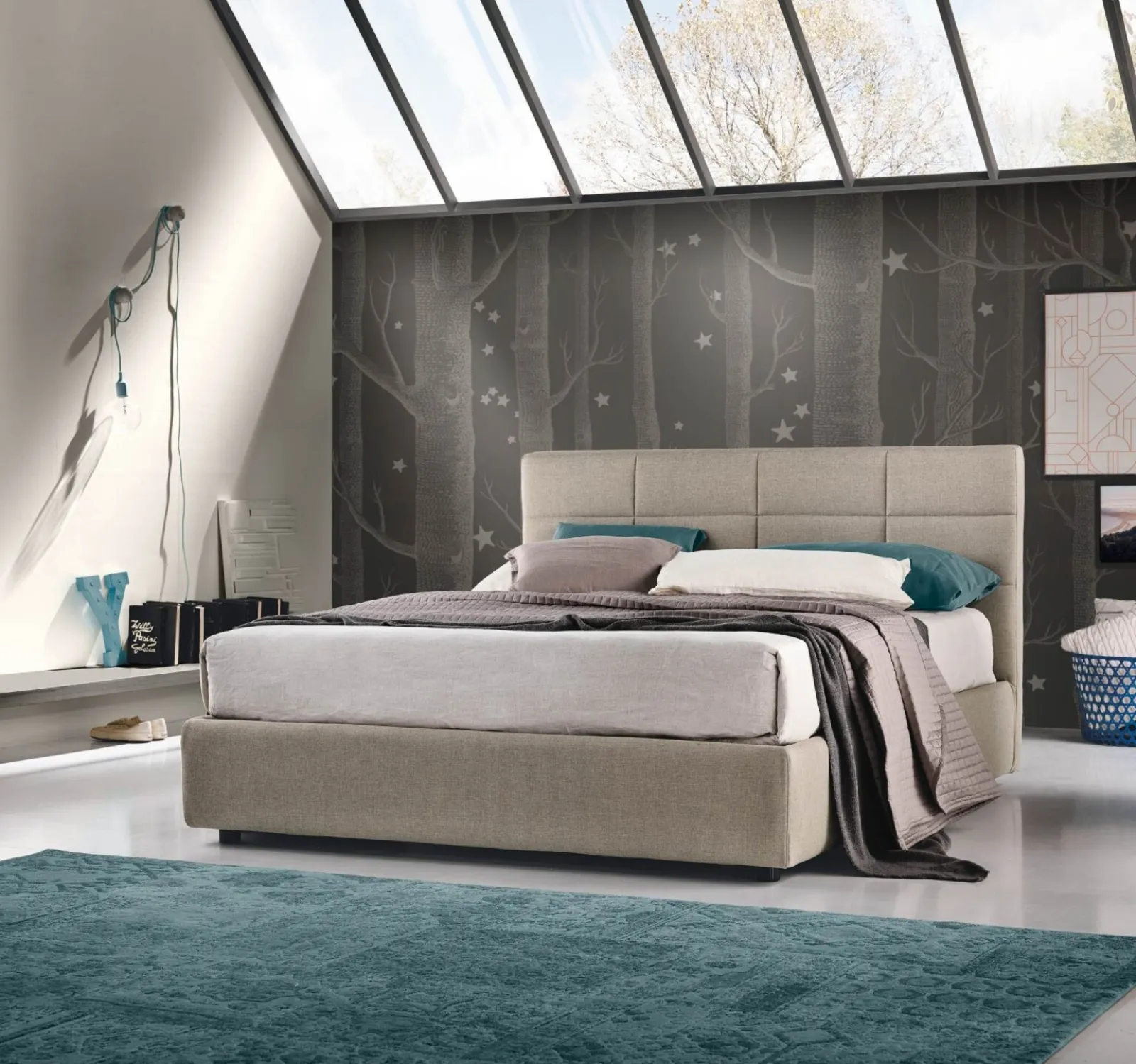 Letto Sole di Susan imbottiti: spazio confortevole e stile unico Per chi desidera una soluzione in tessuto, il modello mostrato in foto è contraddistinto da materiali di prima scelta e forme decise, che invitano a passare un sonno completo e rigenerante. Il Letto Sole di Susan imbottiti è progettato per essere abbinato agli altri elementi d'arredo della camera da letto, come armadi, comò, lampade e piantane. Potrai scegliere tra tonalità e finiture che rispondono ai tuoi gusti personali e creare uno spazio d’arredo unico e originale.