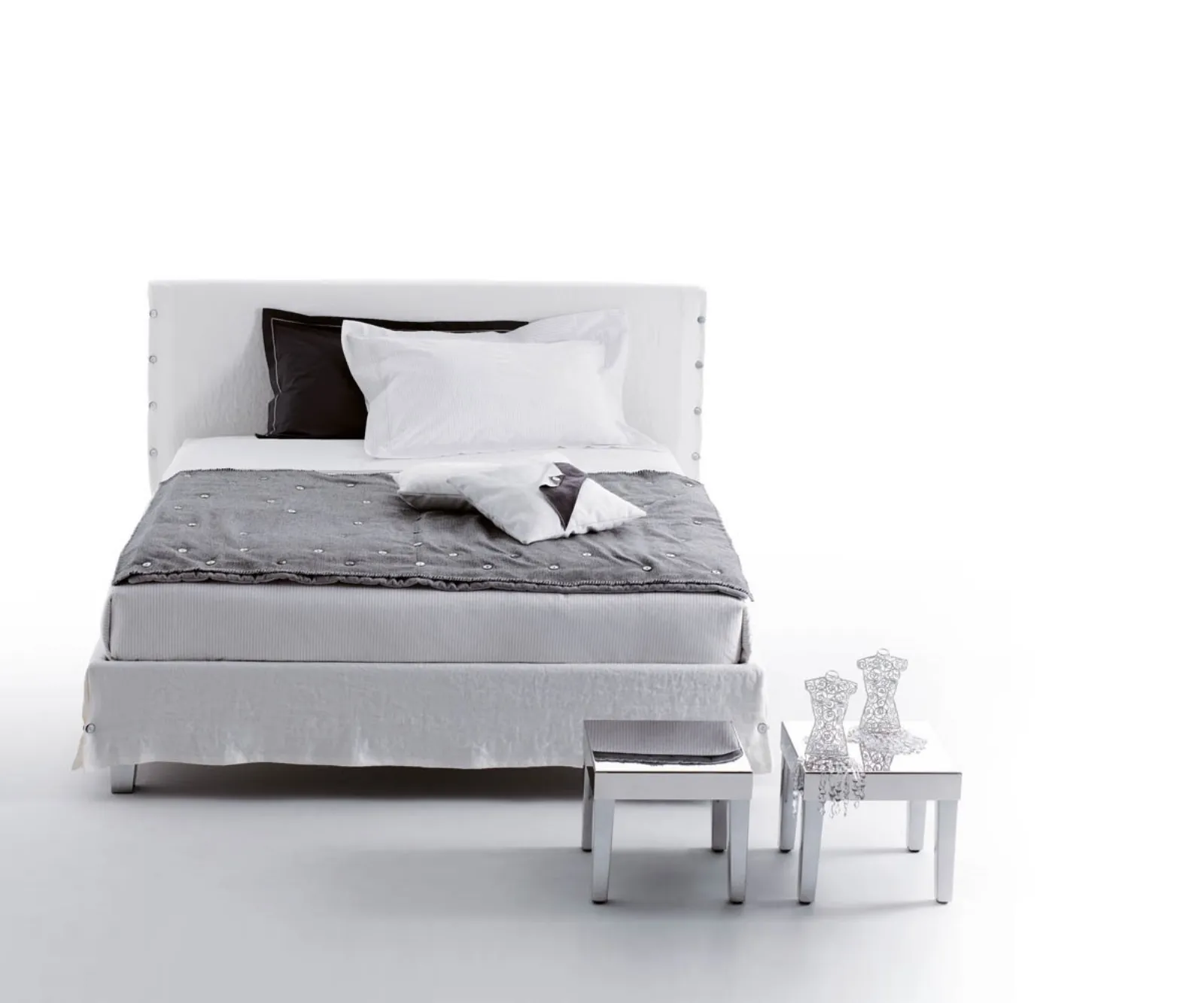 I Letti matrimoniali imbottiti del marchio, specialista nella realizzazione dell'Arredamento Casa, sono progettati per essere abbinati a mobili ed elementi accessori di ogni tipo, come armadi e comodini, abat jour e piantane: scegli tonalità e finiture e realizza il tuo progetto d’arredo nella camera. Se desideri una soluzione in tessuto, il modello visibile in foto è contraddistinto da materiali di qualità e linee decise, che invitano a passare un riposo completo e rigenerante. Il Letto in tessuto White di Horm crea uno spazio intimo e confortevole in ogni camera, garantendoti il sonno più profondo e un design unico.