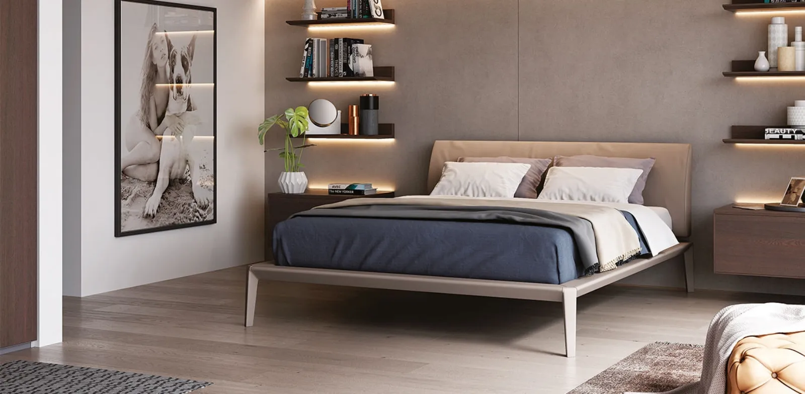 Il Letto Wide con testiera curva in pelle di Mobilform è uno tra i prodotti più esclusivi del marchio, garanzia di resistenza negli anni, qualità delle finiture e stile. Per allestire ottimamente la zona notte è di primaria importanza valutare gli accostamenti con armadi e comò, accessori e quant'altro: se desideri arredi moderni, il modello nella fotografia fa al caso tuo. Naviga il nostro portale di Arredamento Casa e valorizza la tua camera con i Letti matrimoniali imbottiti delle migliori marche.