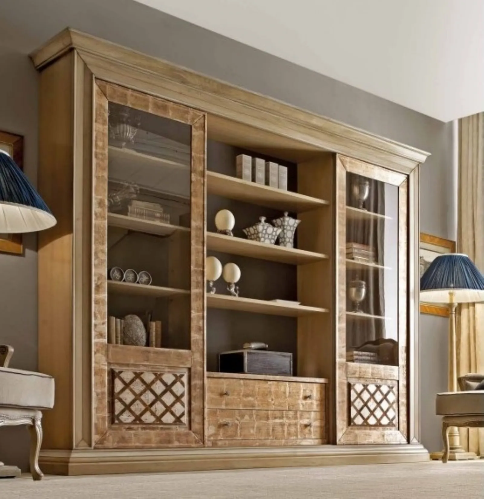 con molteplici componenti, mensole e vani. Se desideri completare stanze classiche, allora la Libreria Art 2107 Vittorio Grifoni, nella variante in legno, è davvero versatile e funzionale, robusta e durevole, nonché caratterizzabile secondo le più personali esigenze abitative. La libreria è disponibile in diverse misure e con vari accessori, così da soddisfare ogni tipologia di spazio, ed è adatta a qualsiasi stile d'arredamento, grazie alle sue linee decise ed eleganti.