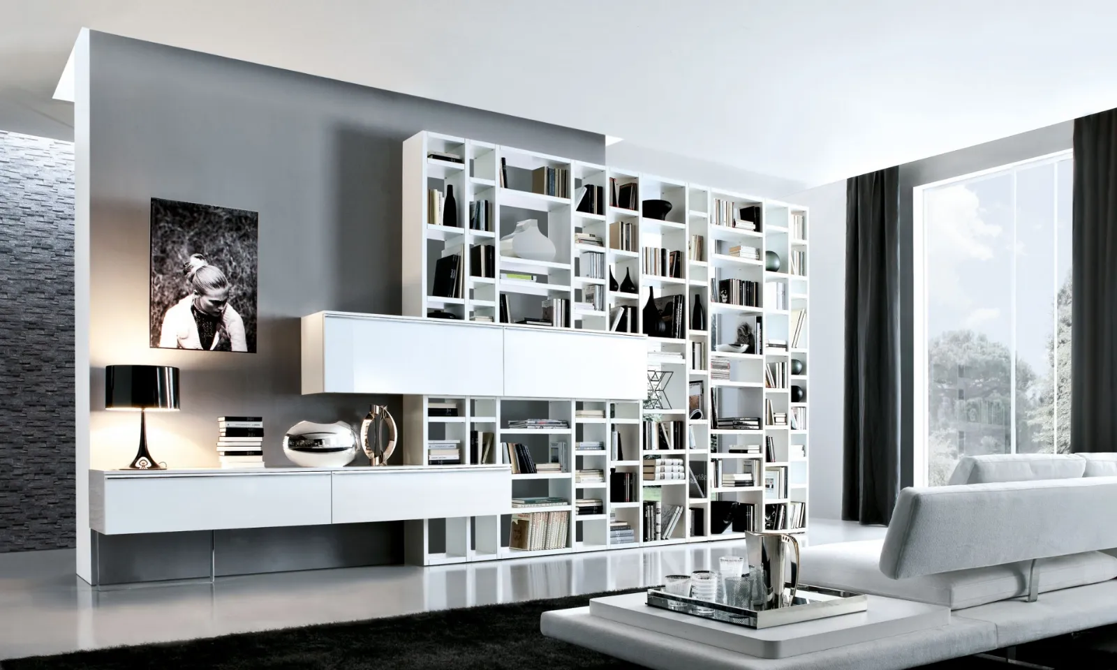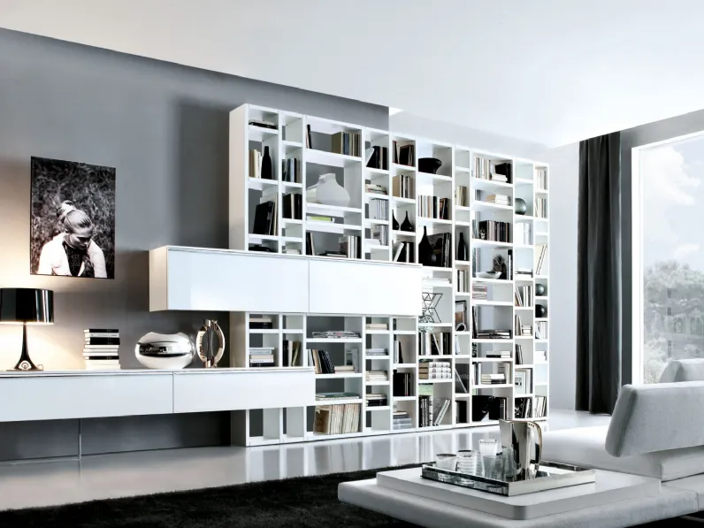 Dai vita al soggiorno operativo e pratico che hai sempre desiderato con la Libreria Crossing in Laccato Bianco di Misuraemme.