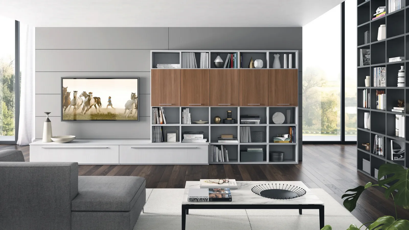 Libreria Living 627 in melaminico di Ime Arredamenti: ideale per ambientazioni moderne in casa. Una soluzione funzionale e di design per arredare con stile.