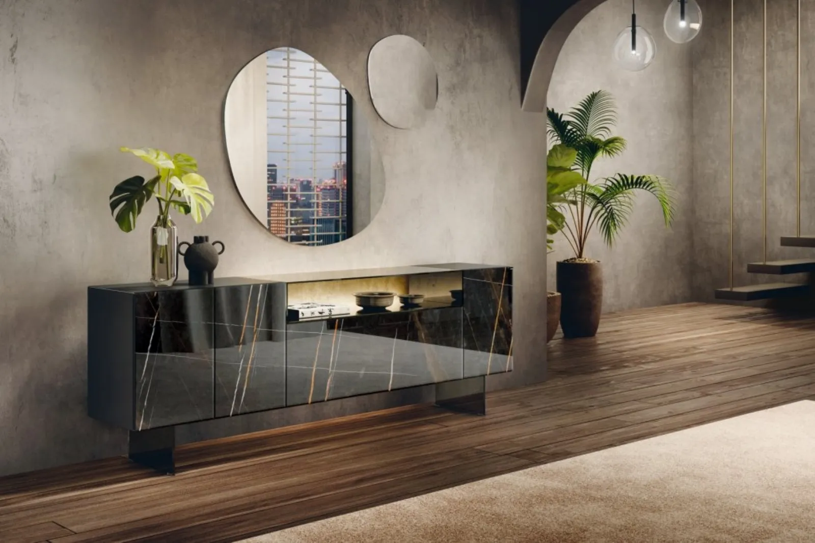 Madia 36e8 Glass 1328 di Lago: un arredo in vetro per un soggiorno moderno ed efficiente. Per le tue esigenze di arredamento casa, scegli le madie di Lago, di stile moderno e dinamico.