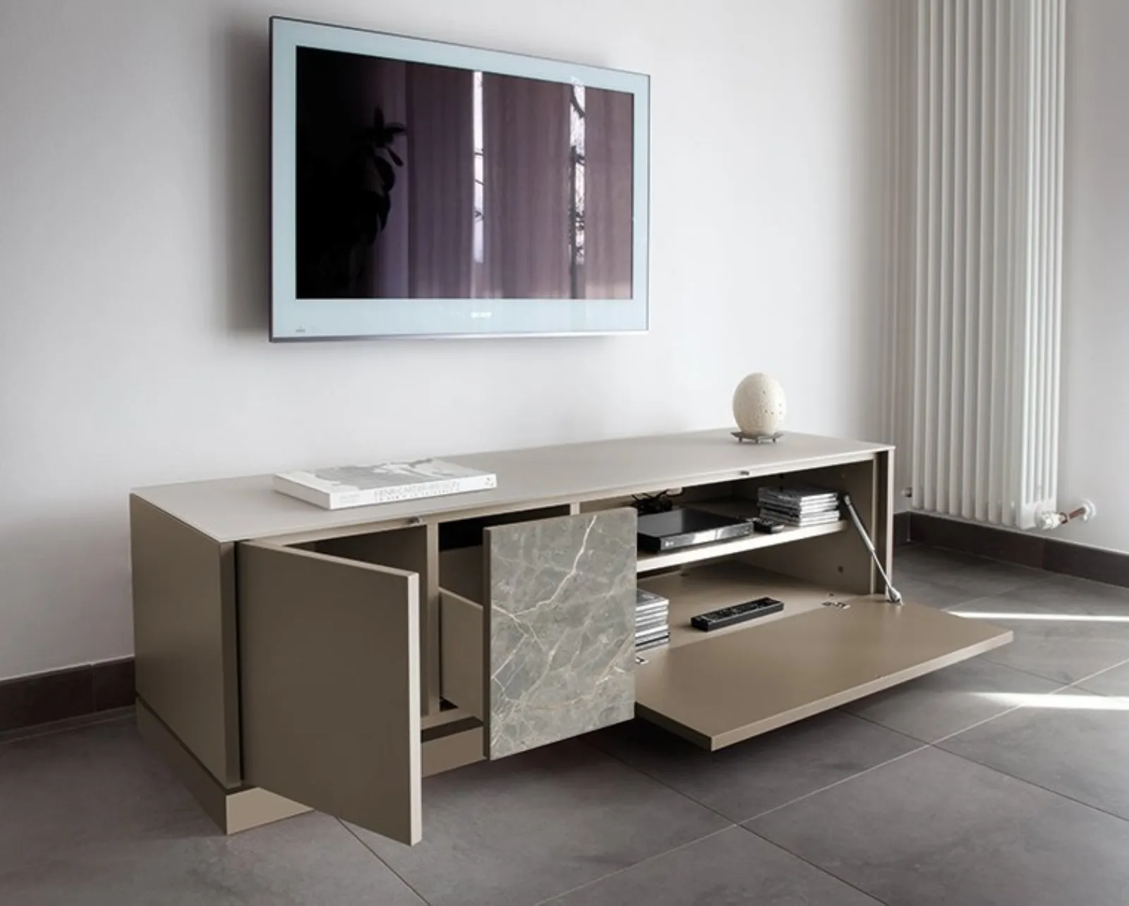 Scopri la nostra serie di Madie in laccato opaco del noto e conosciuto marchio Domitalia, come il modello nella fotografia, e potrai ricreare un soggiorno operativo e pratico seguendo le tue necessità e gusti. Contatta gli esperti di Arredamento Casa e dai vita a un'ambientazione assai funzionale e raffinata con mobili e oggetti accessori per il soggiorno anche realizzabili su misura per te. Carattere accattivante e uno stile unico conquisteranno anche te: la Madia Contour TV di Domitalia è una tra le soluzioni più originali sul mercato. Un mobile soggiorno del genere ottimizza in modo strategico i tuoi spazi arricchendone l'estetica. Opta per la Madia Contour TV di Domitalia e goditi un soggiorno accogliente e raffinato, scegliendo tra le seguenti caratteristiche per un arredamento di qualità: