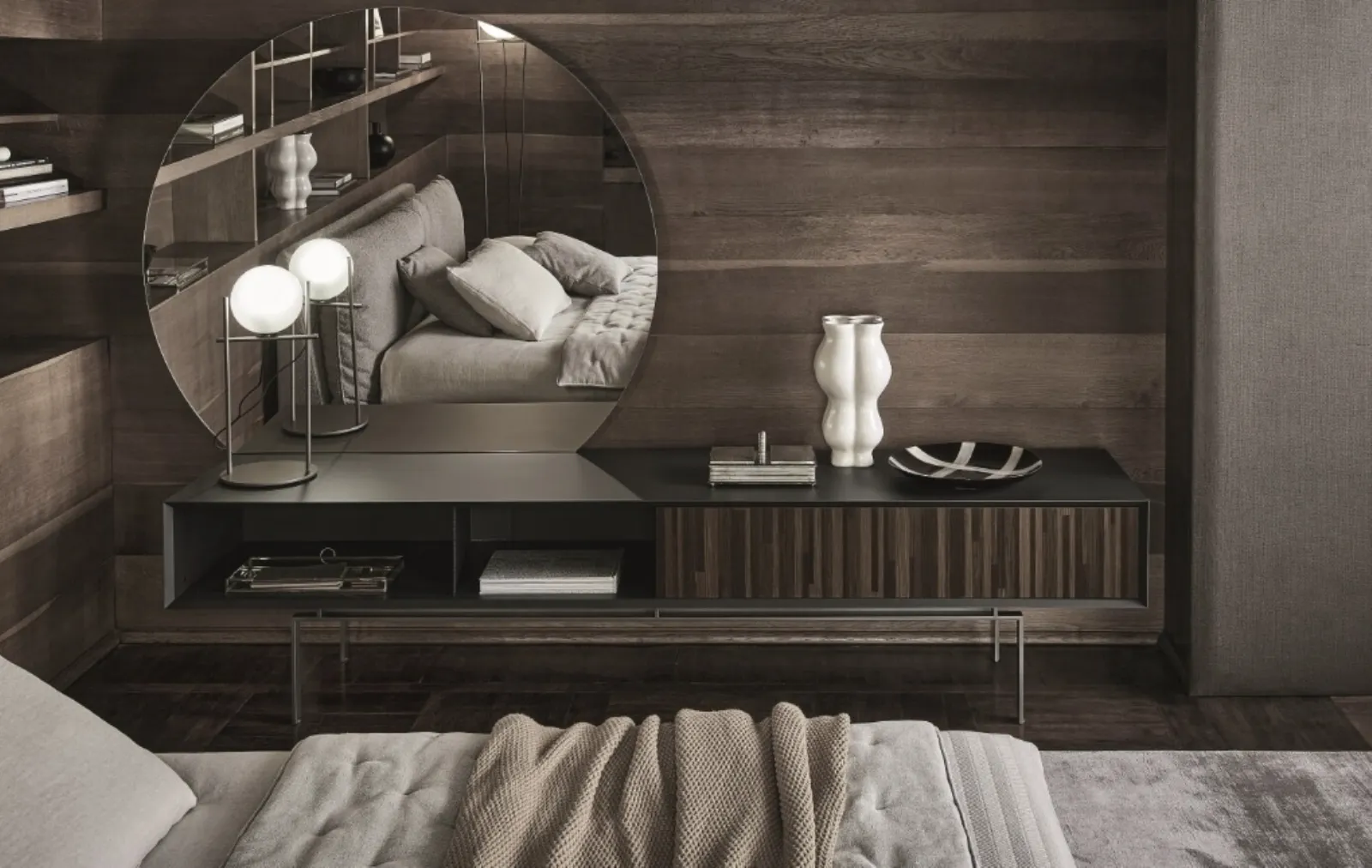 - Madia in legno di Minotti: robustezza ed eleganza;