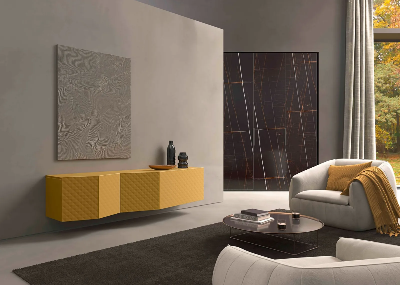 La Madia sospesa Louvre Laccato Senape Diamante di Olivieri presenta: