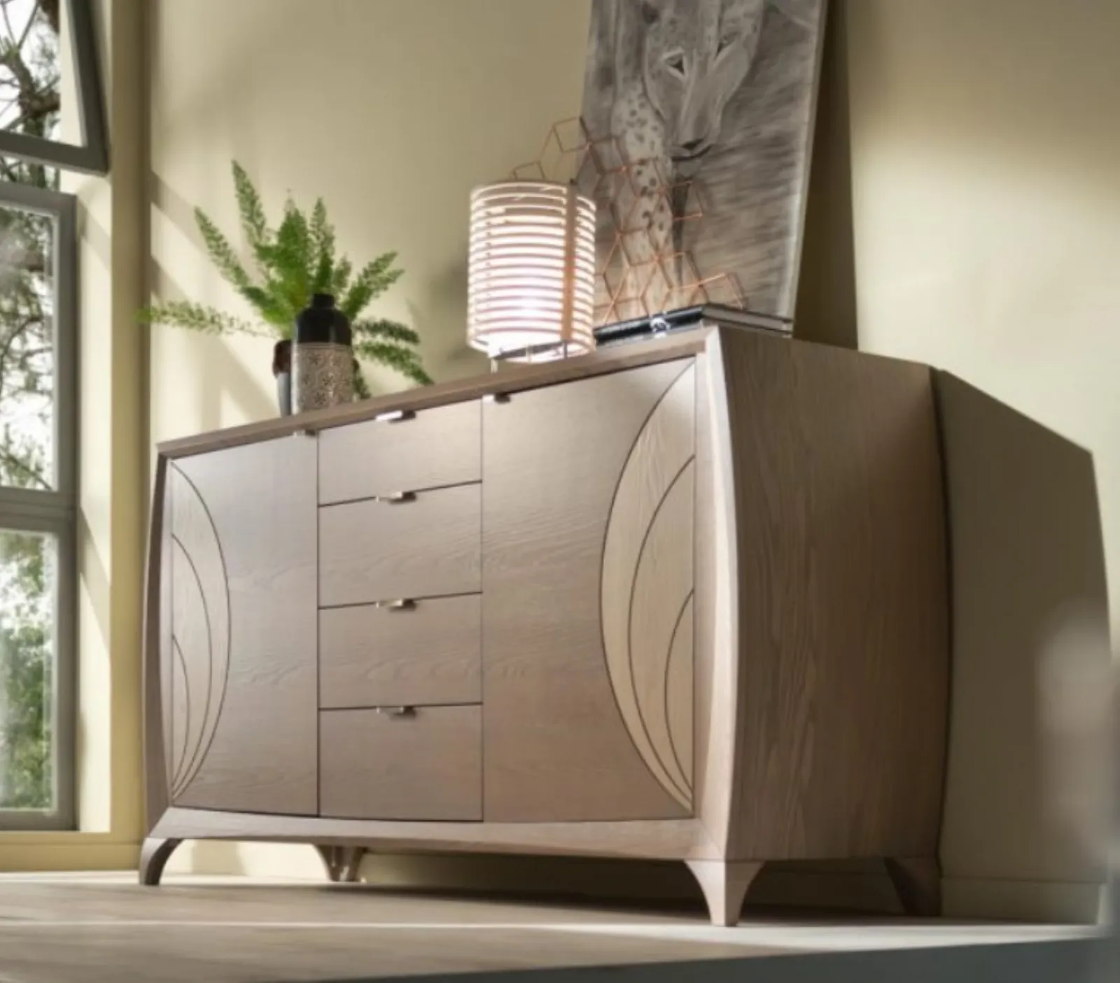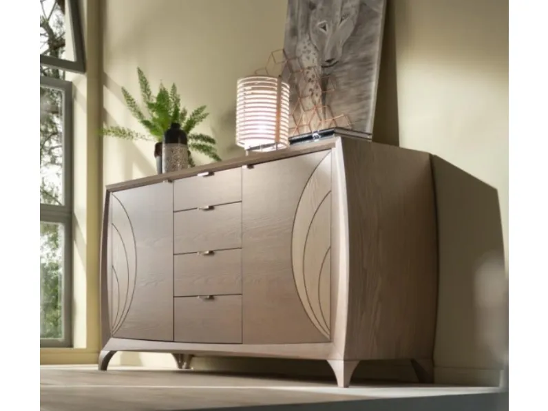 Madia Luna Art 5014 Finitura Fango Poro Aperto con Dettagli Sabbia in Legno Padovani Mobili. Un arredo per arricchire e organizzare al meglio stanze moderne. Ideale per la tua casa.