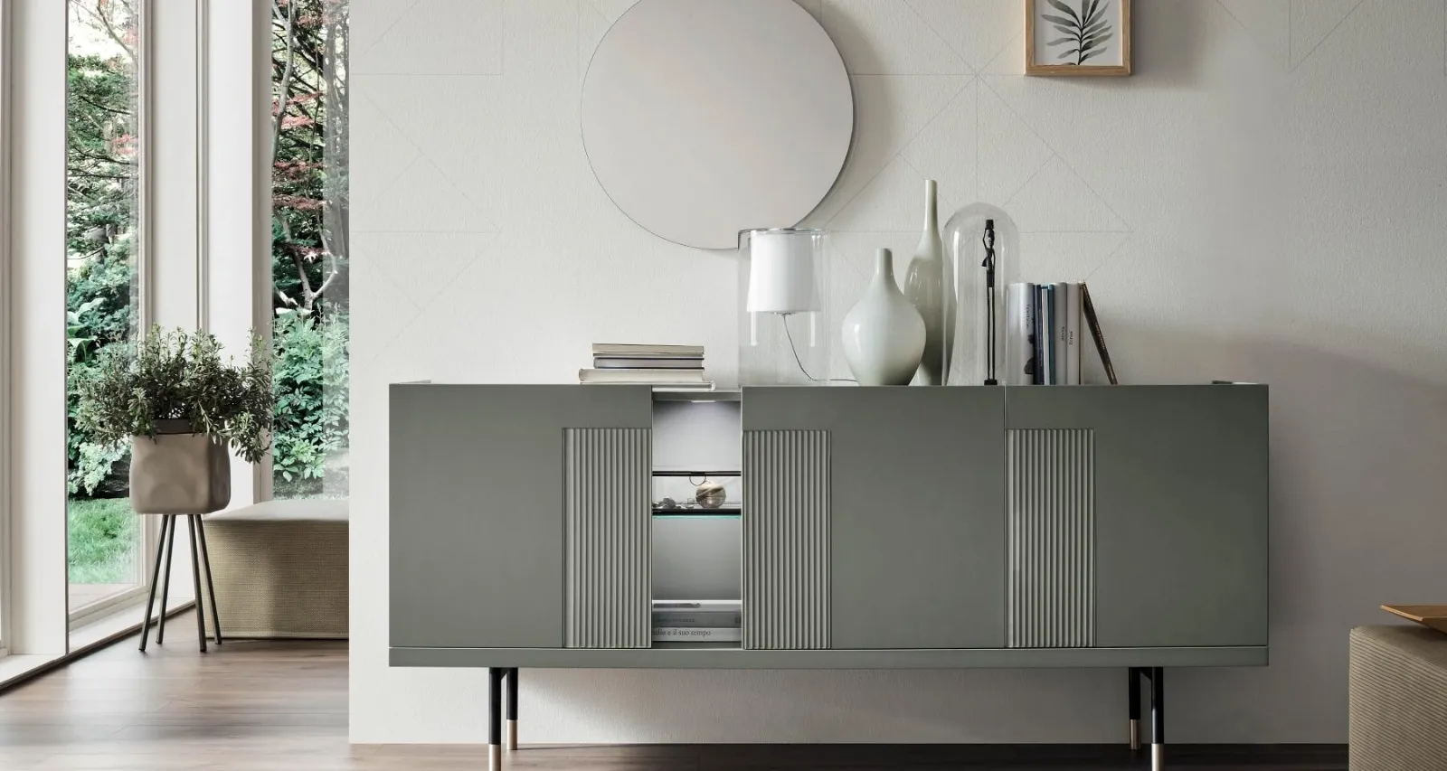 - Madia Aura Glass AG001 in laccato verde palude opaco di Maronese Acf: scegli questo modello per risolvere le più particolari necessità di spazio e stile