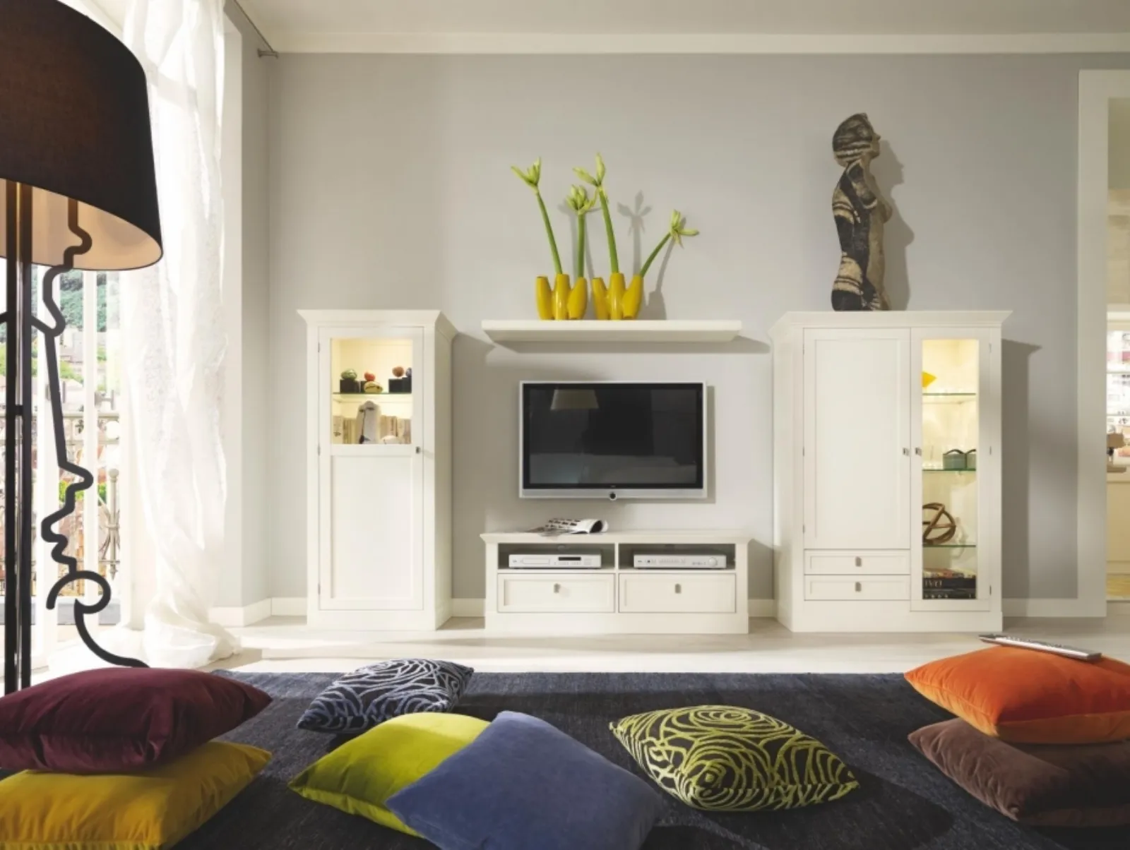 Anche in un soggiorno non troppo grande, questi mobili soggiorno riescono a risolvere varie problematiche abitative assicurando varie possibilità di caratterizzazione su misura. La