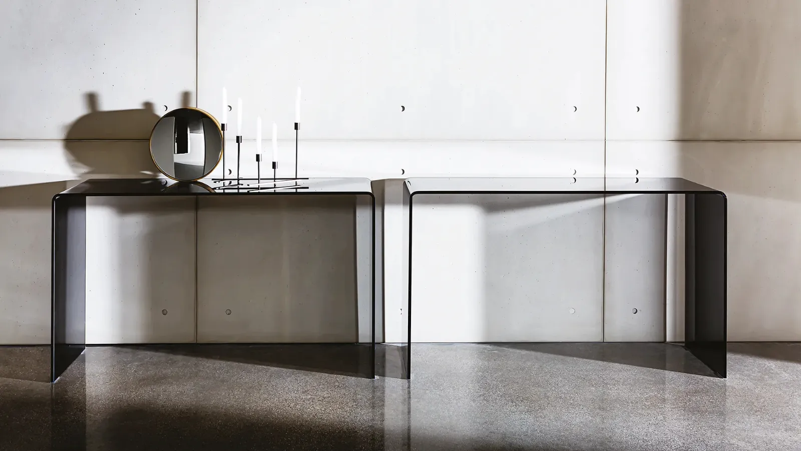 Un mobile Hall Bridge in vetro di Sovet è stato progettato per arredare con stile gli ingressi moderni.