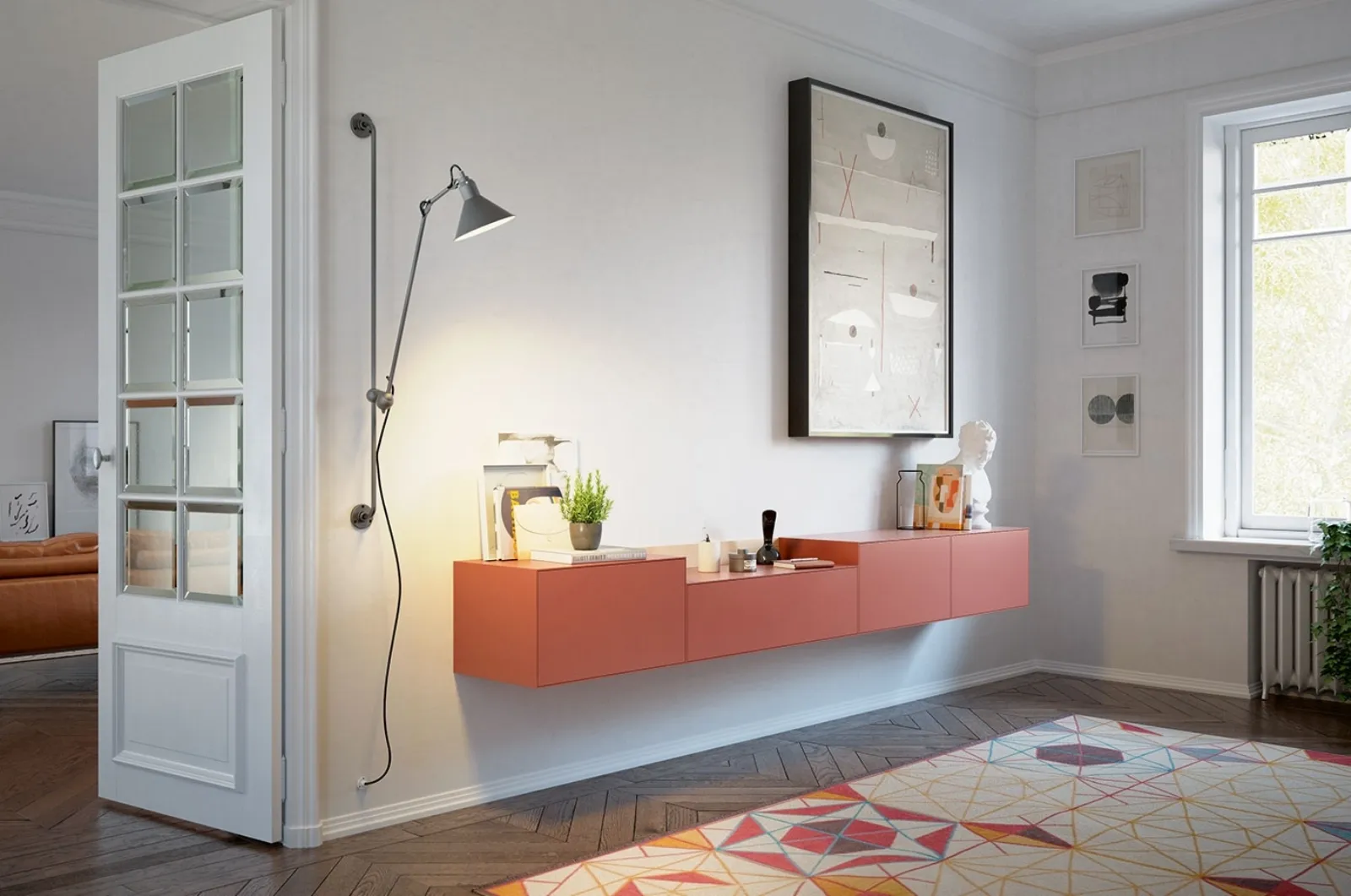 Lasciati ispirare dai pensili moderni di Treku. Il modello Lauki Natural Oak e Brick in laccato opaco è perfetto per arredare la tua casa!