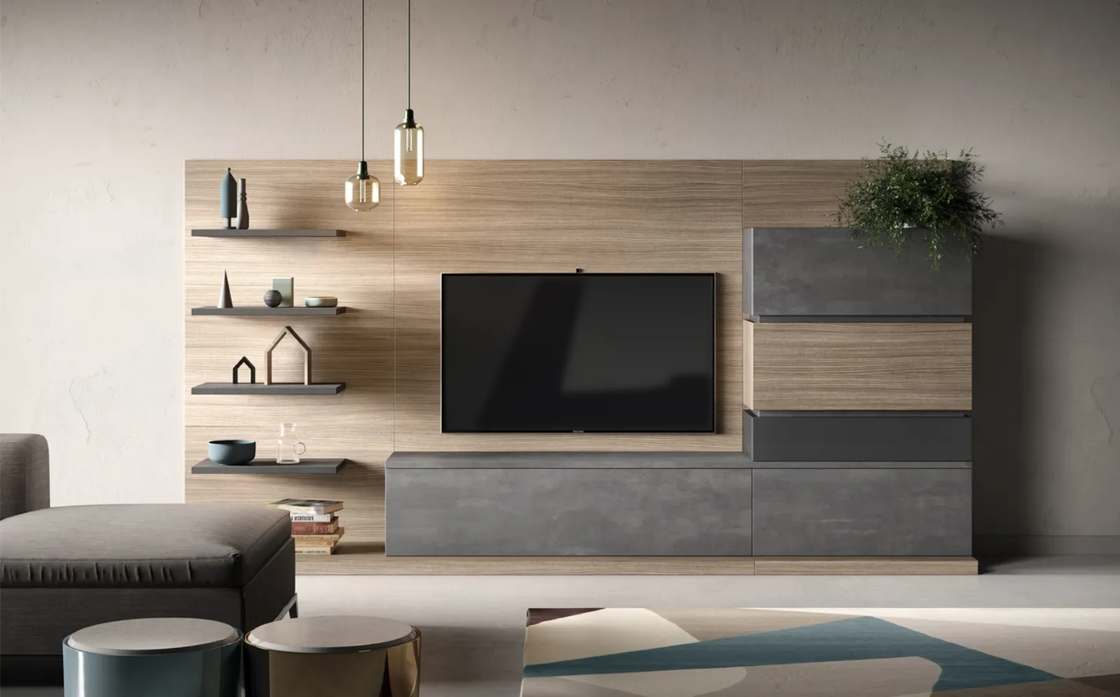Le Pareti Attrezzate moderne come quella in foto permettono di ricreare varie ambientazioni, liberando spazio nel living e sfruttando bene ogni angolo. La Parete Attrezzata 36Home Pure A di 2B Italia diventa presenza caratterizzante in stanze di ogni genere grazie ai suoi componenti modulari e alla possibilità di selezionare texture, materiali, cromie, conformazioni e molto altro. Scopri la nostra serie di arredi per il soggiorno dell'azienda e potrai completare la tua casa con uno stile unico e la contenitività di cui hai bisogno. Il nostro portale di Arredamento Casa in melaminico, in base alle più attuali e particolari esigenze abitative, seleziona solo le più belle soluzioni d’arredo moderne, definite da grandi doti di progettualità su misura.