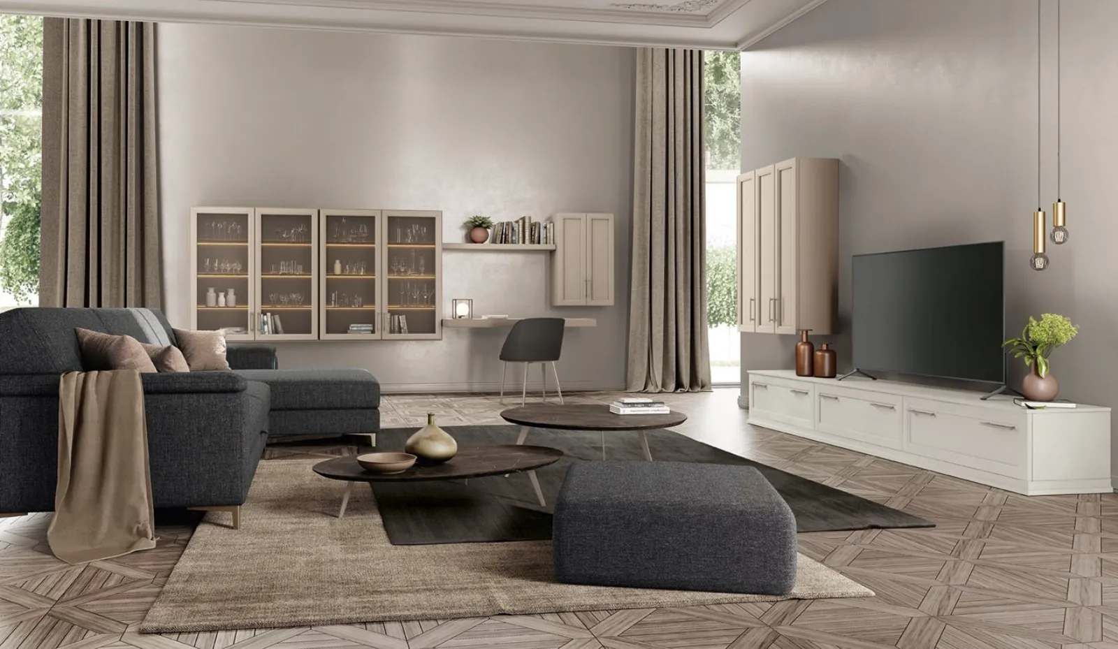 La Parete Attrezzata Arcadia L008 di Colombini Casa diventa protagonista in stanze di ogni genere grazie ai suoi accessori modulari e alla possibilità di abbinare finiture, materiali, cromie, forme e tanto altro. Il nostro sito di Arredamento Casa in melaminico, in base alle più attuali e personali esigenze abitative, seleziona solo le più originali soluzioni d’arredo moderne, definite da grandi doti di progettualità su misura. Le Pareti Attrezzate moderne come quella nella fotografia permettono di ricreare differenti atmosfere, liberando spazio nel living e sfruttando bene ogni angolo. Scopri la nostra collezione di arredi per il soggiorno dell'azienda e potrai completare i tuoi spazi con un design unico e le doti contenitive di cui necessiti.