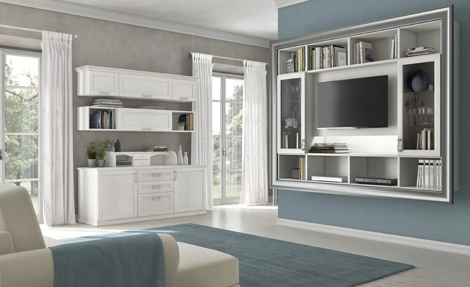Scopri la nostra serie di mobili per la zona giorno del marchio e potrai ultimare i tuoi interni con uno stile unico e la contenitività di cui necessiti. Le Pareti Attrezzate classiche come quella nella fotografia consentono di creare differenti atmosfere, liberando spazio nel soggiorno e ottimizzando ogni angolo. Il nostro sito di Arredamento Casa in melaminico, in base alle più attuali e personali esigenze abitative, seleziona solo le più esclusive soluzioni d’arredo classiche, definite da grandi doti di personalizzazione su misura. La Parete Attrezzata Arcadia L019 di Colombini Casa diventa protagonista in stanze di ogni genere grazie ai suoi accessori modulari e alla possibilità di valutare finiture, materiali, cromie, forme e molto altro.