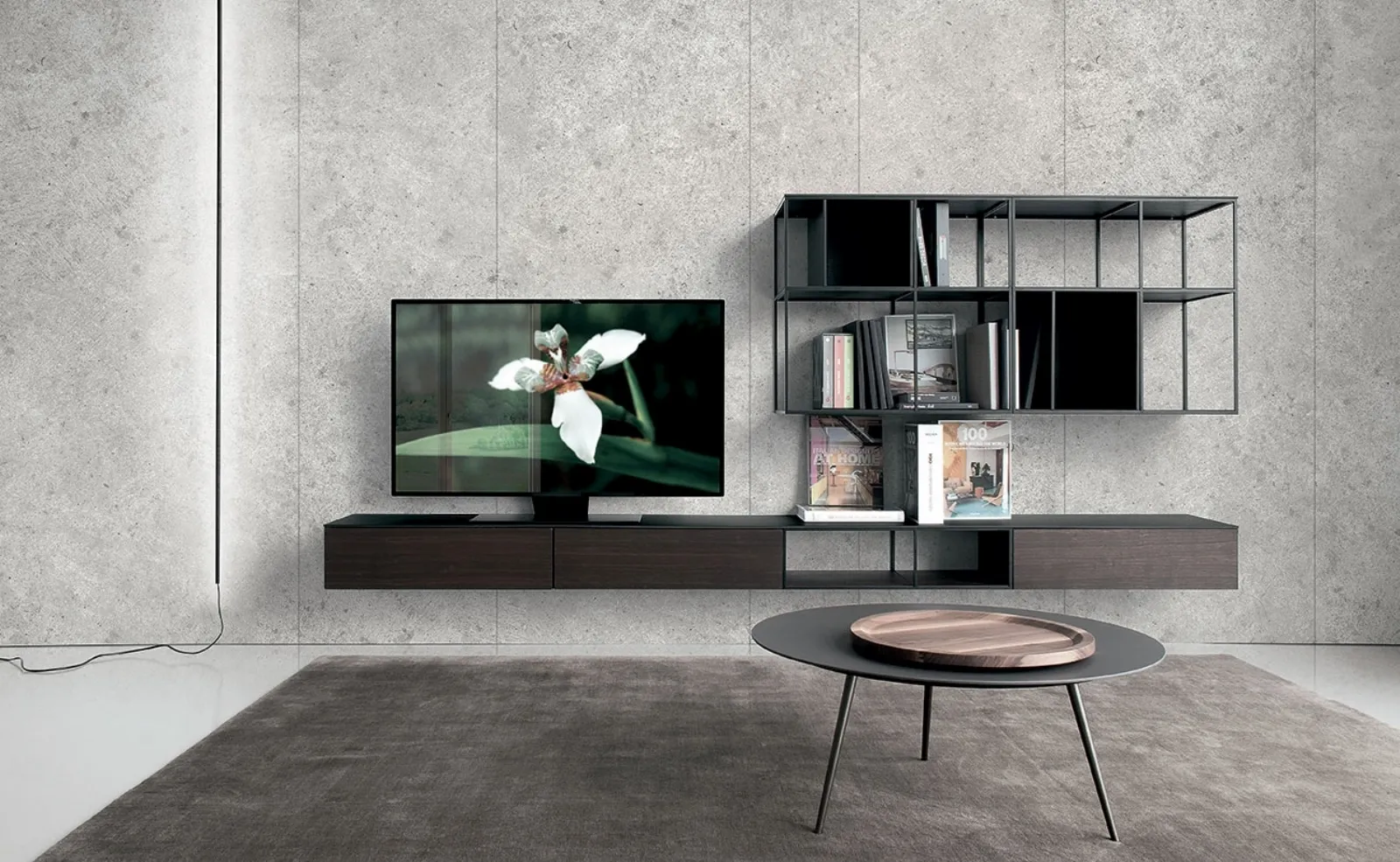 Parete attrezzata Atelier 06 di Extendo: linee essenziali e modernità per l'arredamento della tua casa. Disponibile in HPL.