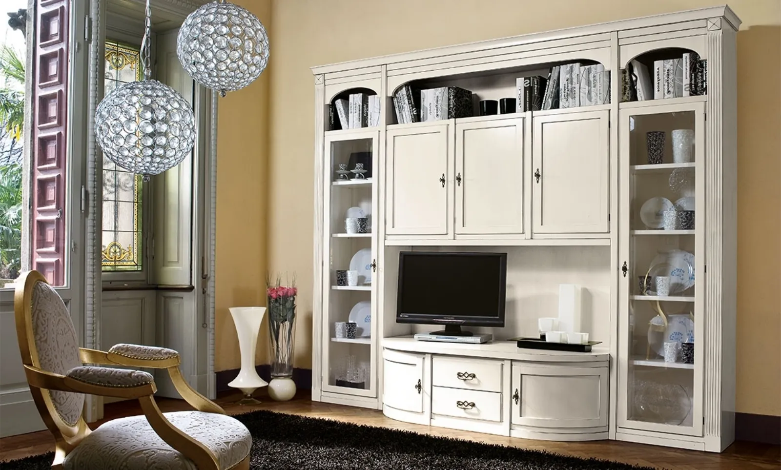 Uno degli stili d'arredo più amati dagli architetti e dagli appassionati di design è senza dubbio quello classico. Se desideri arredare la tua casa con un tocco di stile, la Parete Attrezzata Cellini di Betamobili è l'ideale. La ricca gamma di pareti attrezzate classiche di Betamobili è pensata per soddisfare le eterogenee esigenze abitative di ogni abitazione, combinando un'estetica raffinata con funzionalità. Scegli la parete attrezzata in foto e contattaci per trovare tutte le proposte di arredamento in legno laccato: