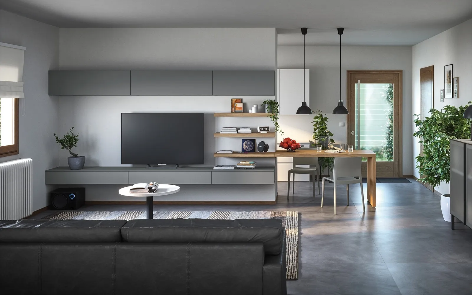 - Soluzione: Parete Attrezzata 04E in melaminico di Cinquanta3.