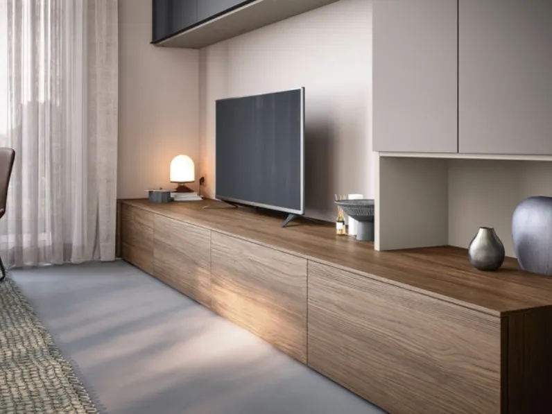 Le Pareti Attrezzate moderne sono un'ottima soluzione di arredamento per il soggiorno: con un gioco di incastri, sovrapposizioni, componenti a giorno o vani chiusi, possono sfruttare al meglio ogni spazio e diventare un arredo multifunzionale. Negli ultimi tempi le Pareti Attrezzate hanno conquistato un posto di primo piano in fatto di Arredamento Casa, essendo una soluzione salvaspazio e realizzabile su misura. Se sei interessato alla Parete Attrezzata 05D di Cinquanta3 in foto, contattaci per trovare le più belle proposte di soggiorni della firma. Questo modello può adattarsi a qualsiasi spazio, ed è realizzabile in diverse texture, tonalità e conformazioni, in melaminico o altri materiali, secondo le esigenze abitative più personali. Alcune delle caratteristiche di questa Parete Attrezzata sono: