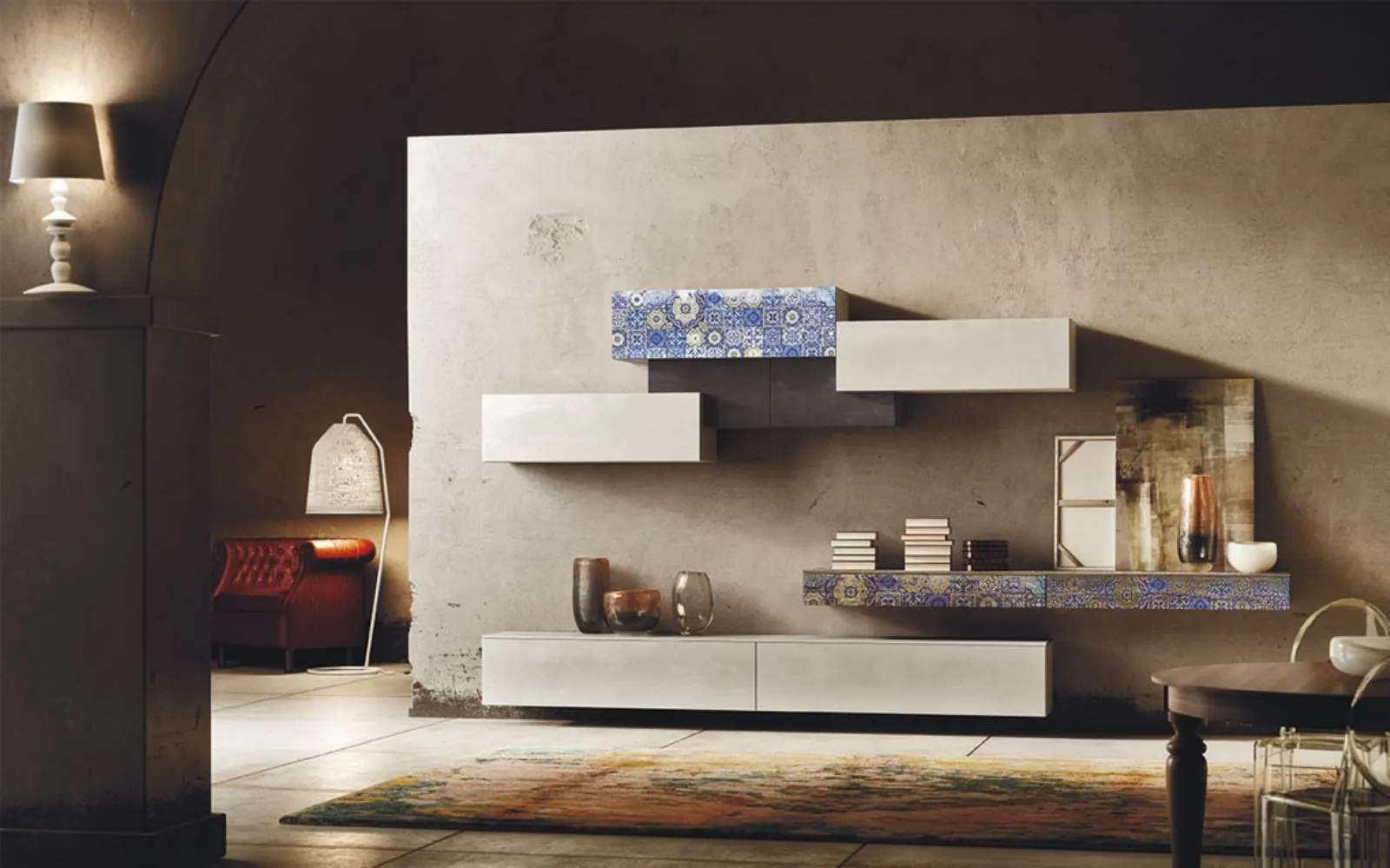 Il modello mostrato in foto è realizzato in materico ma grazie ad una vasta scelta di texture, cromie e conformazioni potrà adattarsi a spazi di ogni genere secondo le più particolari problematiche abitative. Per informazioni e preventivi sulla Parete Attrezzata Club Decor 06 di 2B Italia nella fotografia contattaci e trova le più originali proposte di soggiorni dell'azienda. Ultimamente le Pareti Attrezzate hanno conquistato un posto importante in fatto di Arredamento Casa, essendo mobili multifunzionali e salvaspazio realizzabili su misura. Attraverso un gioco pratico e dinamico di incastri, sovrapposizioni, accessori a giorno o vani chiusi, le Pareti Attrezzate moderne arredano il soggiorno sfruttando bene ogni spazio.