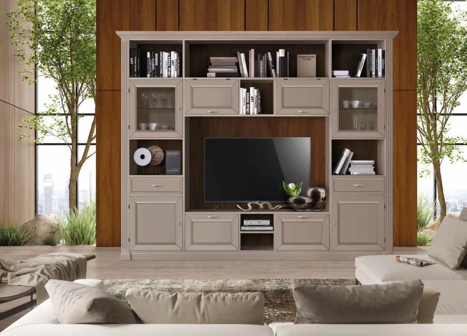 I mobili soggiorno in legno laccato dalle linee classiche come il modello mostrato in foto sono davvero versatili e capaci di ammobiliare la zona giorno usufruendo al meglio di ogni angolo. La Parete Attrezzata Icon 2|4 IC157 di Imba Srl in foto è una delle più esclusive soluzioni d’arredo sul mercato: componibilità personalizzabile e le diverse possibilità di progettazione la rendono funzionale ed esteticamente gradevole. Lasciati stuzzicare da un ricco catalogo di mobili per la zona giorno e potrai trovare la parete attrezzata che fa al caso tuo. Imba Srl propone inediti modelli di Pareti Attrezzate, diverse per stile e conformazioni, finiture e accessori: scopri l'Arredamento Casa del marchio.