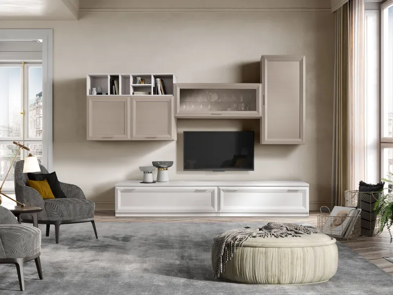 Scopri Parete Attrezzata Jazz Minimal composizione 105 di Gierre Mobili: una tra le più originali e rinomate soluzioni in melaminico per l'arredamento di casa. Un'idea unica per rendere speciale il tuo soggiorno.