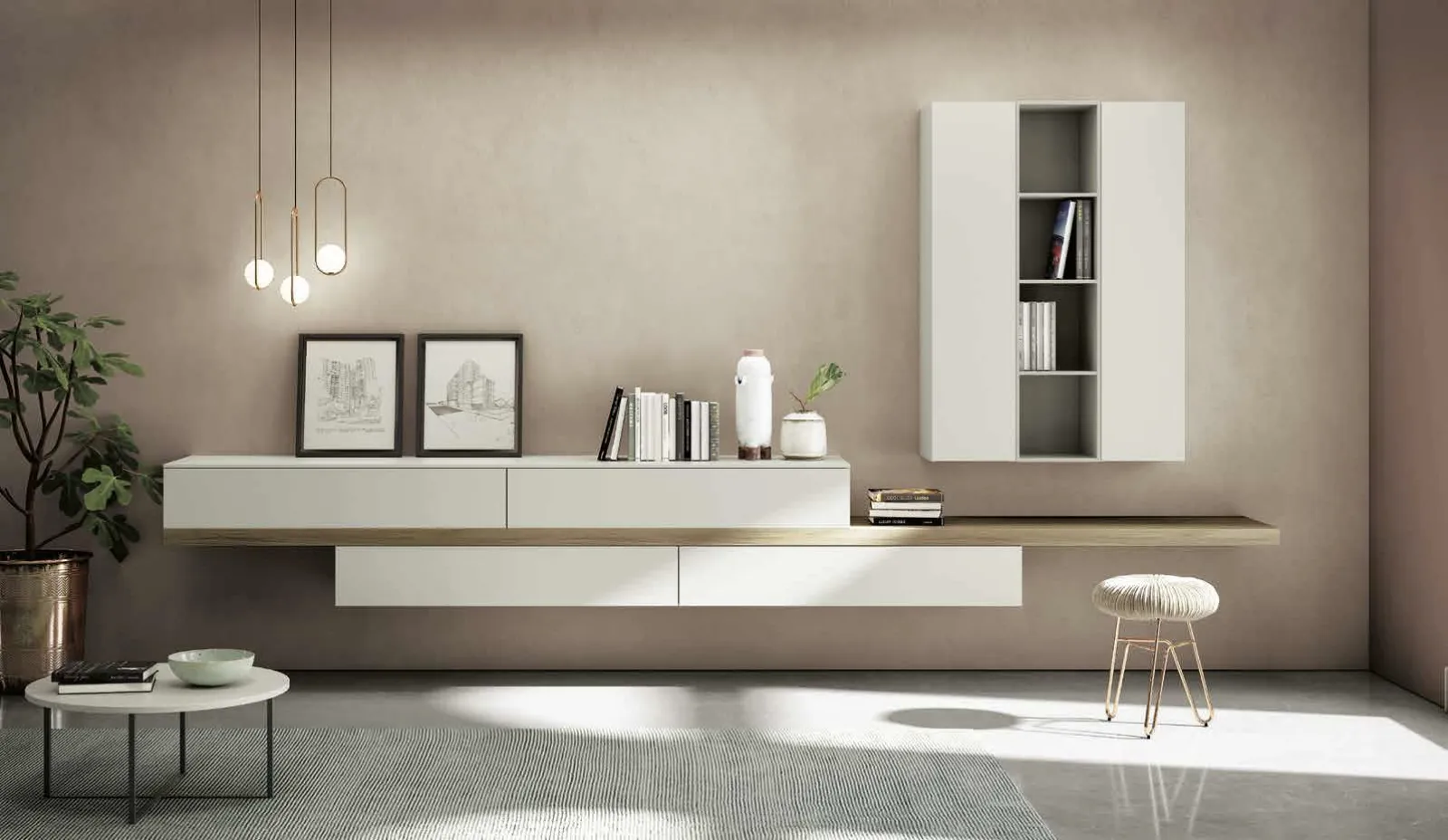 Lasciati affascinare da una ricca gamma di mobili per la zona giorno e troverai la Parete Attrezzata che fa al caso tuo. I mobili soggiorno in laccato opaco dalle linee moderne come il modello presente in foto sono davvero versatili e capaci di progettare la zona giorno sfruttando bene ogni angolo. Spagnol Mobili offre a catalogo innovativi modelli di Pareti Attrezzate, diverse per stile e conformazioni, texture e accessori: scopri l'Arredamento Casa dell'azienda. La Parete Attrezzata sospesa Living 848 di Spagnol Mobili in foto è una delle più originali soluzioni d’arredo sul mercato: l'alta componibilità, l'ampia gamma di colori e finiture, le differenti possibilità di progettazione e le moderne soluzioni di illuminazione la rendono bella e funzionale. Caratteristiche principali:
