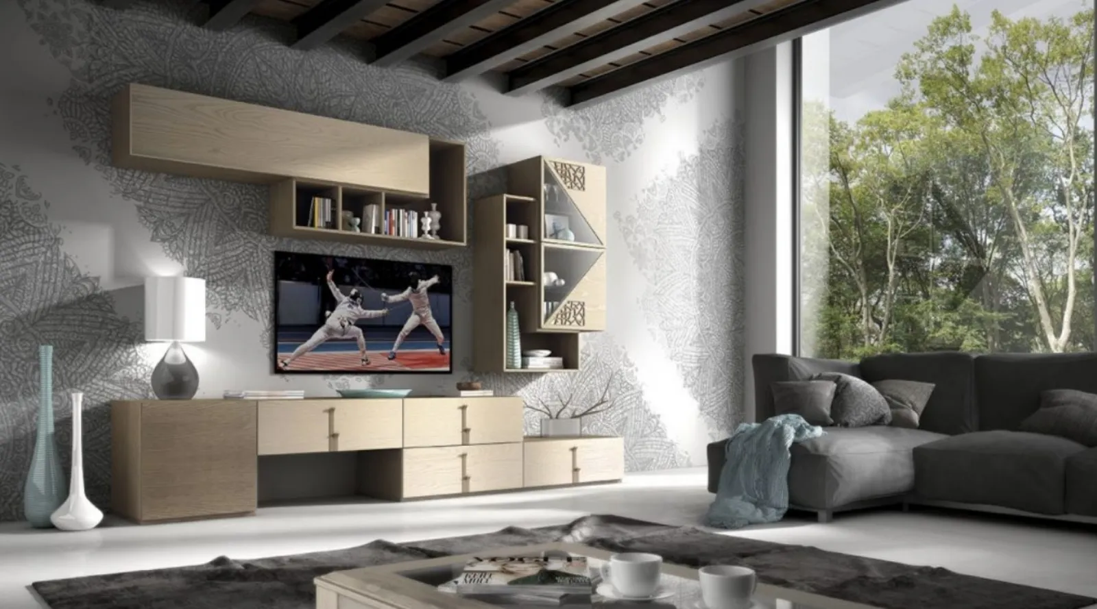 Home - Arredamento Casa - Pareti Attrezzate - Manhattan art 6021finitura bicolore Creta e Deserto