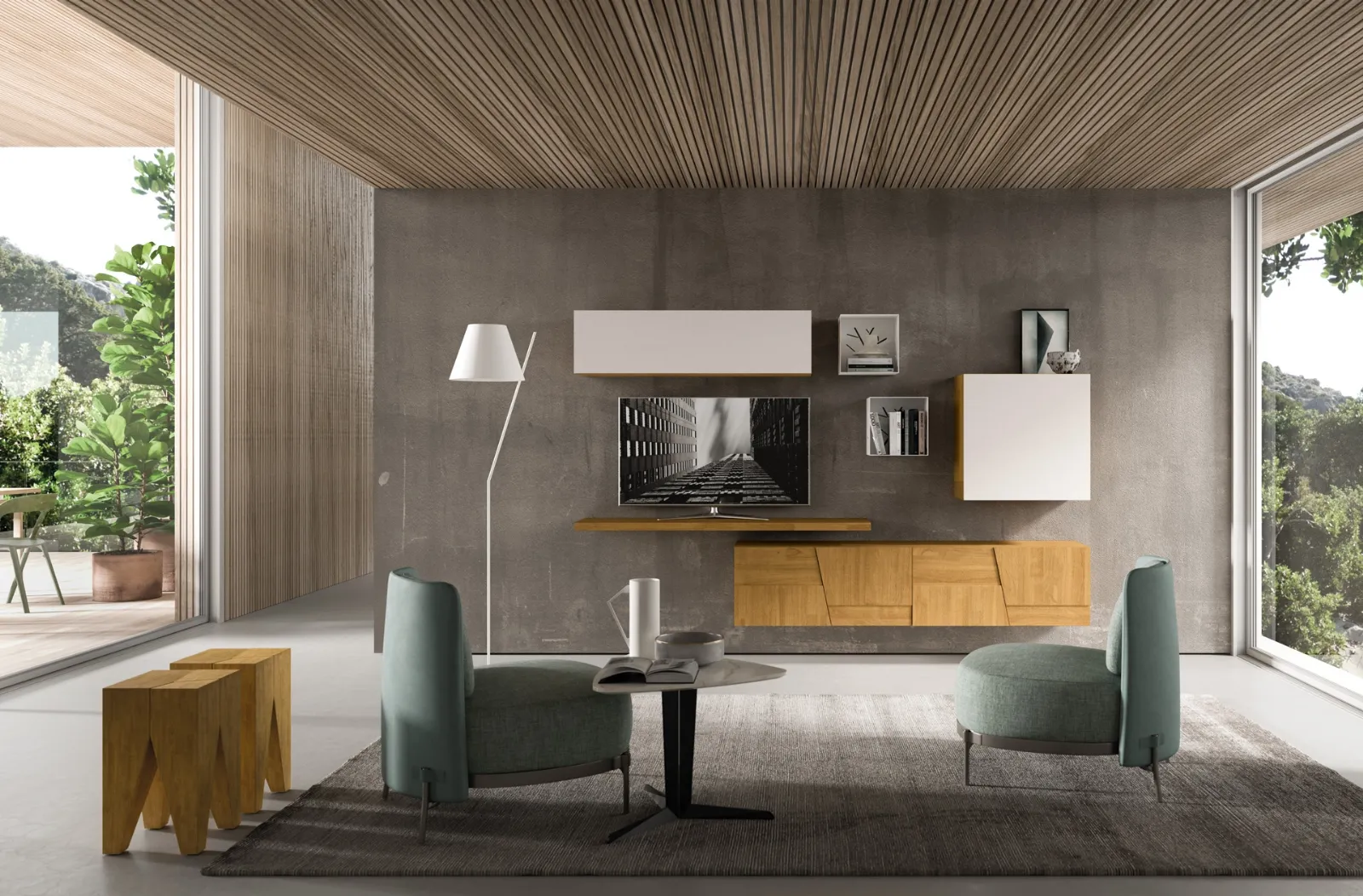 La Parete Attrezzata sospesa Mixer 04 in legno e laccato di FGF Mobili nella fotografia è una tra le più belle soluzioni d’arredo in commercio: componibilità su misura e le differenti possibilità di progettazione la rendono bella e di grande qualità. FGF Mobili produce innovativi modelli di Pareti Attrezzate, diverse per stile e forme, texture e componenti: scopri l'Arredamento Casa della firma. I mobili soggiorno in legno dalle linee moderne come il modello visibile in foto sono veramente versatili e capaci di ammobiliare il soggiorno sfruttando bene ogni angolo. Lasciati ispirare da una ricca gamma di arredi per il soggiorno e potrai trovare la parete attrezzata che fa al caso tuo.