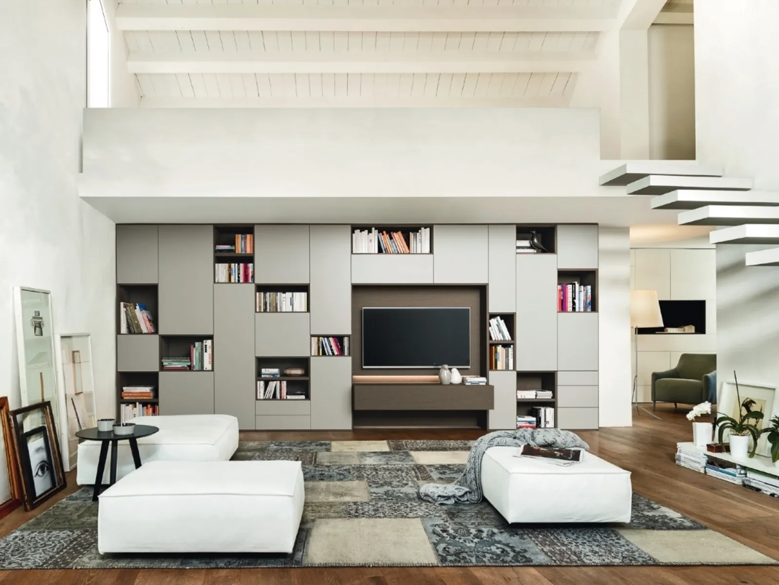 - Combinazione di librerie, mobili contenitori ed espositori