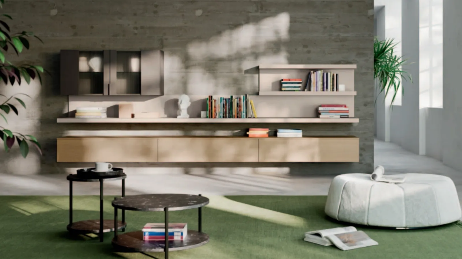 Scopri la parete attrezzata Day 01 di Orme in melaminico per ottimizzare il tuo soggiorno.