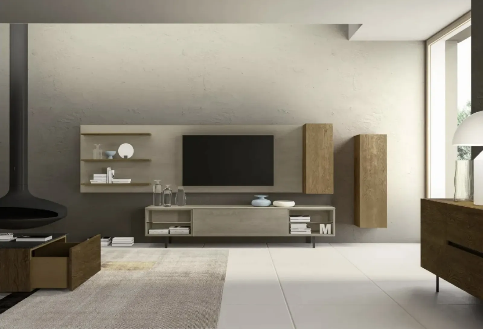 Pareti Attrezzate moderne: scopri la parete attrezzata Cheba 02 Fratelli Mirandola Per risolvere le eterogenee esigenze abitative di ciascuno, il rinomato marchio Fratelli Mirandola ha ideato un ricco catalogo Pareti Attrezzate moderne particolarmente funzionali e connotate da un tocco di stile. A muro oppure freestanding per ottimizzare un open space, le più esclusive composizioni d’arredo in commercio arredano il soggiorno usufruendo al meglio di ogni angolo. La Parete attrezzata con libreria Cheba 02 Fratelli Mirandola nell'immagine è dotata di: